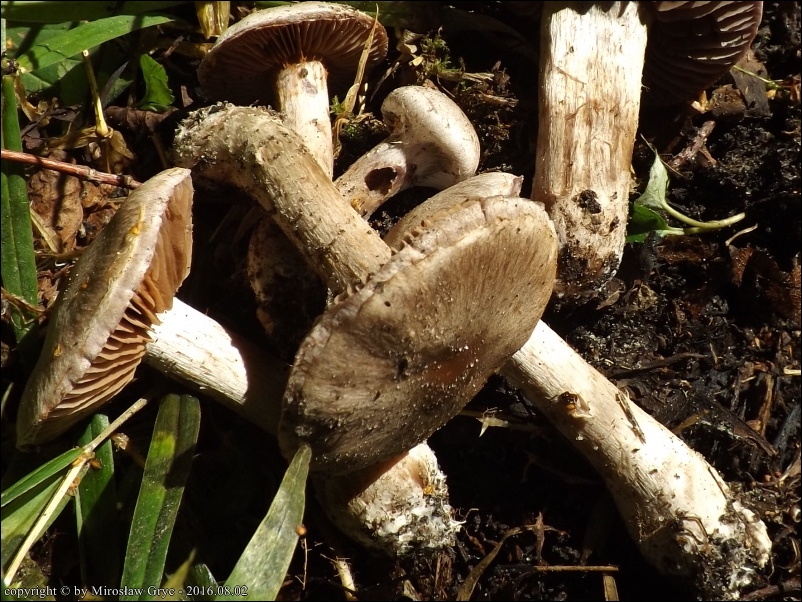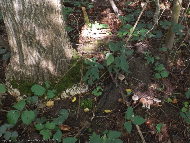 Substrat: Grupka owocników na ziemi, u podstawy topoli.