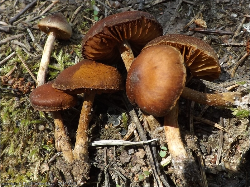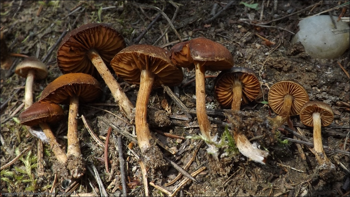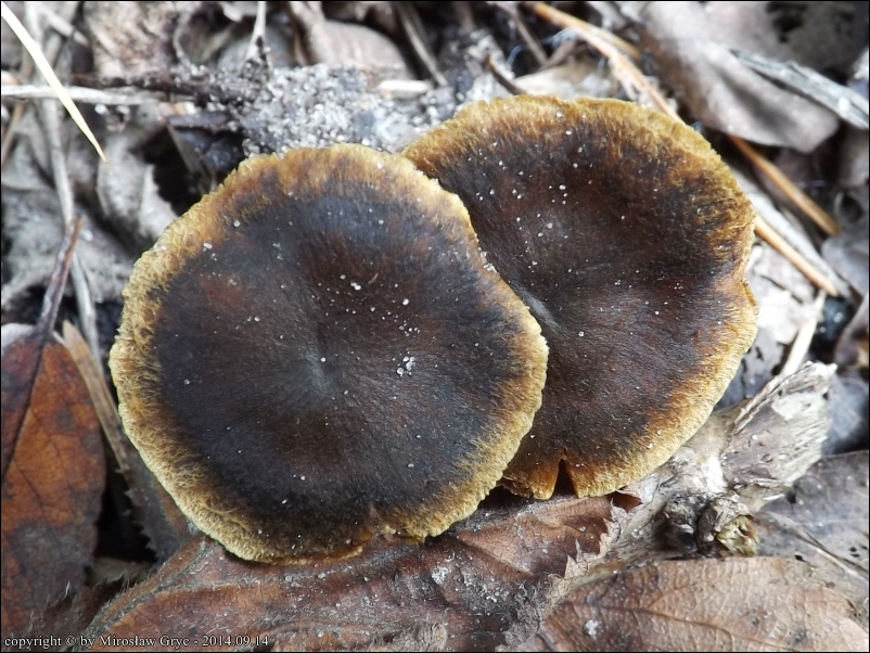 Siedlisko: Owocniki pobrane z kilku grup, odległych od siebie o kilkadziesiesiąt metrów. Wszystkie wyrastały na lub obok zaniedbanego pasa przeciwpożarowego, odgraniczającego monokulturę świerkową od liściastego obsadzenia.