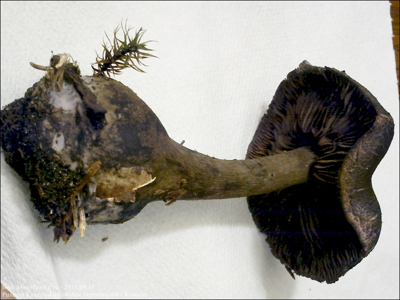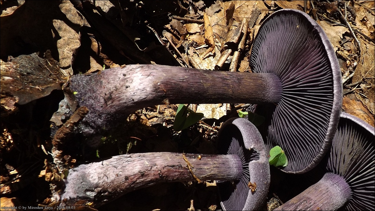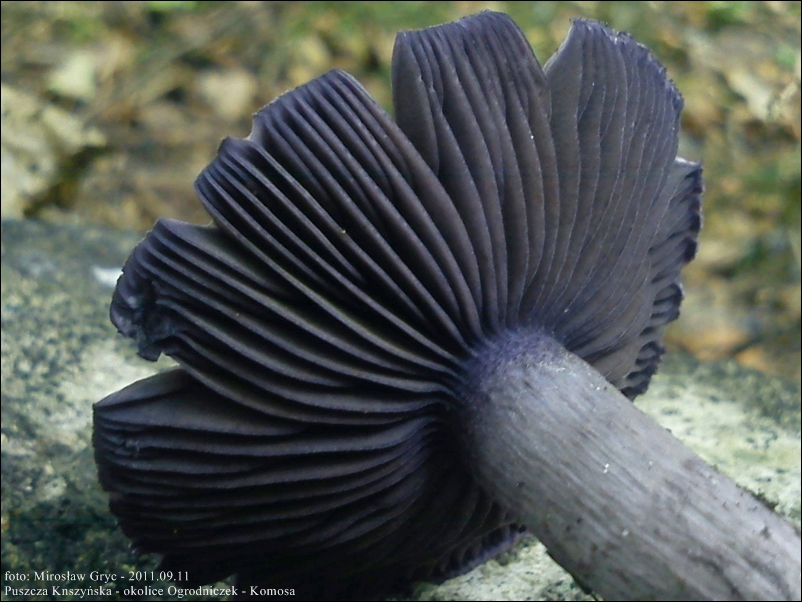 Blaszki: czysto fioletowe w młodośći, z wiekiem coraz bardziej brązowiejące, szeroko przyrośnięte.