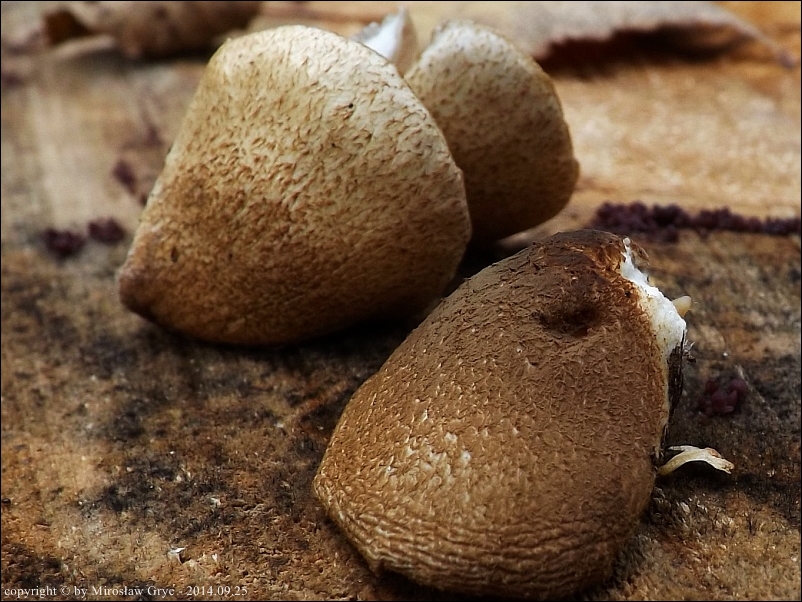 | 2015.10.22 | Skraj Puszczy Knyszyńskiej, Pólko. | Zaniedbany, opuszczony sad; martwa gałąź jabłoni (Malus sp.). Numer wątku na Bio-Forum: 33/796085. Mikroskopował Błażej Gierczyk. Publikacja: Błażej Gierczyk, Mirosław Gryc (2024). Materiały do poznania grzybów podstawkowych Puszczy Knyszyńskiej i jej przedpola. Przegląd Przyrodniczy XXXV, 2 (2024): 3-65 (jako: Crepidotus mollis var. calolepis ) |