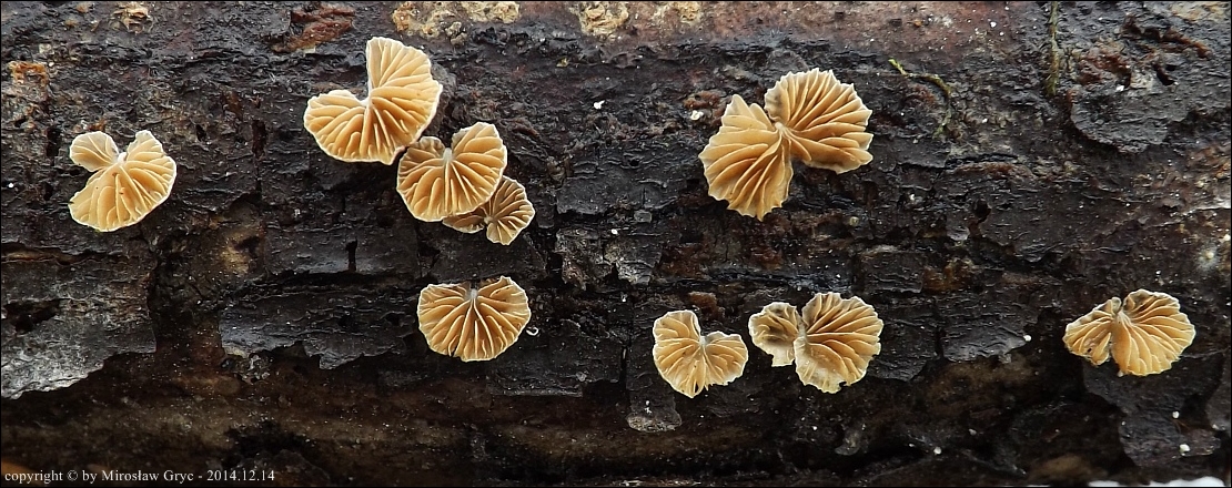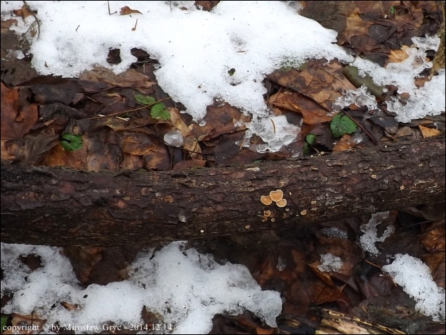 Substrat: Owocniki na leżącej na ziemi gałęzi liściastego.
