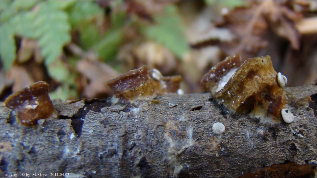Perydium: grube, jednowarstwowe; na zewnatrz pilśniowe; od wewnątrz gładkie, równe, szarobiaławe, połyskliwe; ujście koliste i równe.