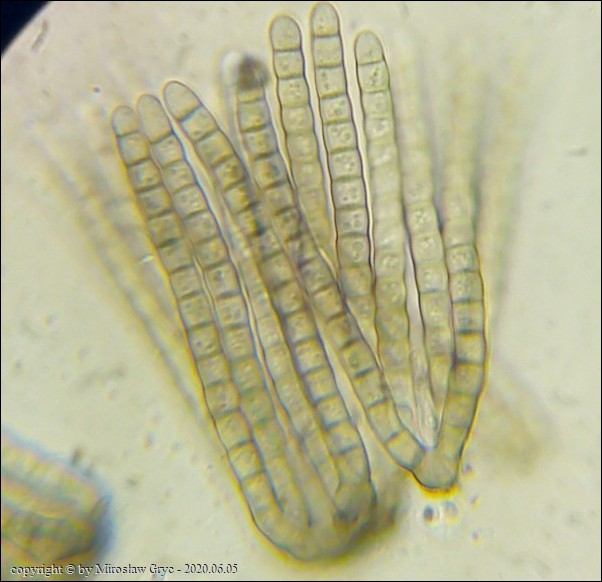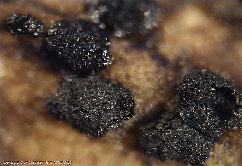 Substrat: Owocniki na korze martwego konaru drzewa liściastego.
