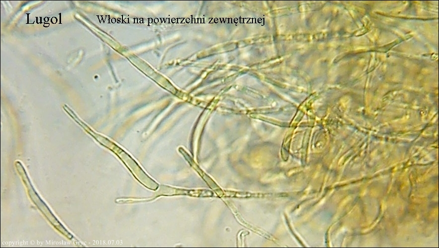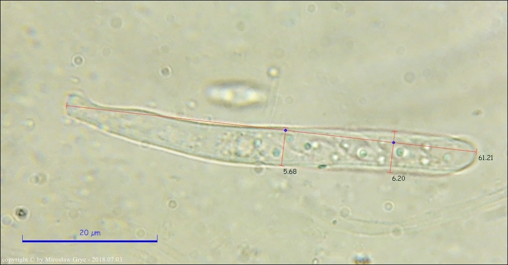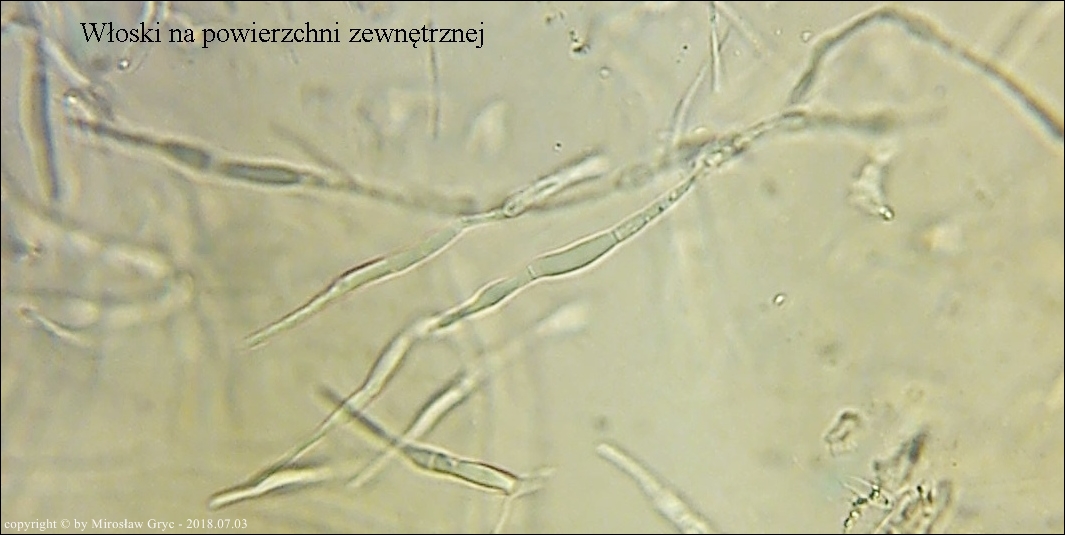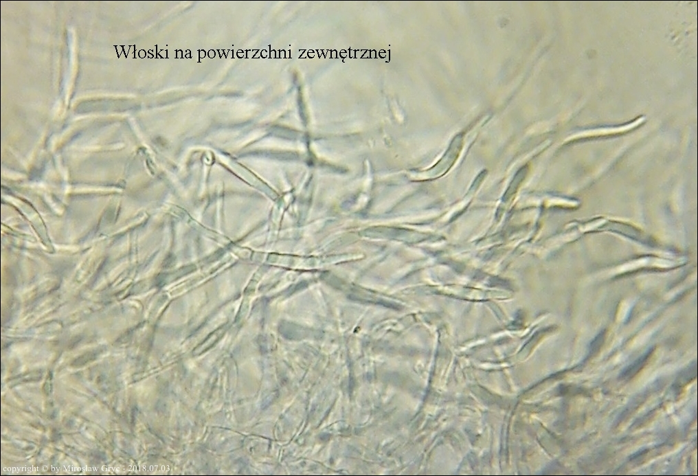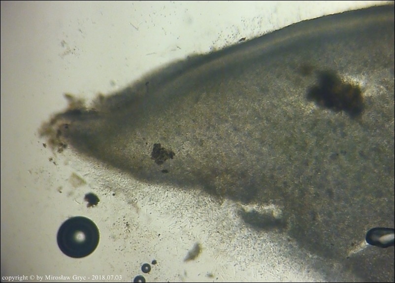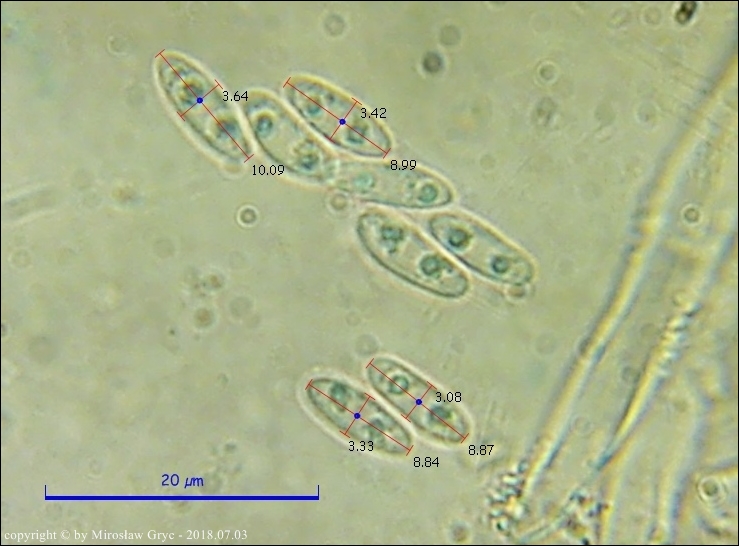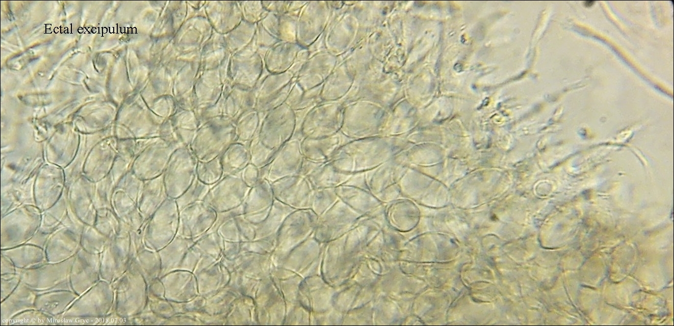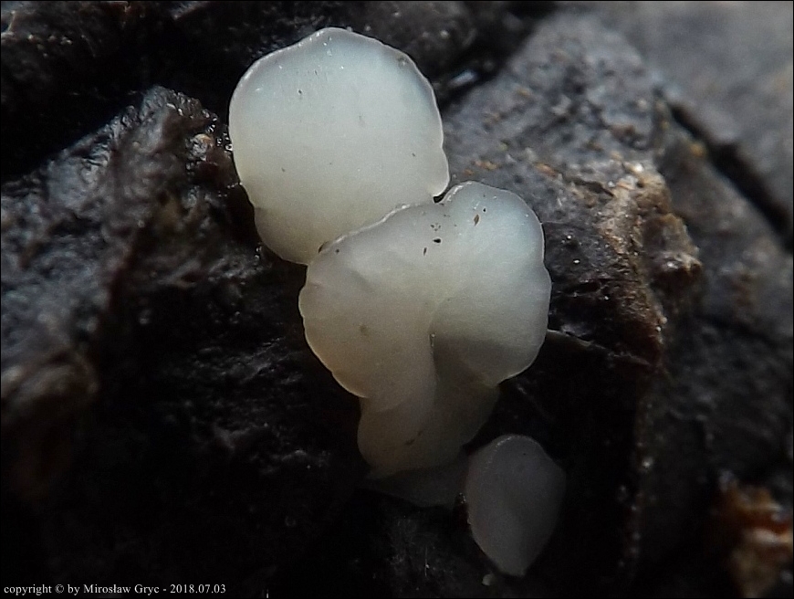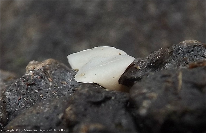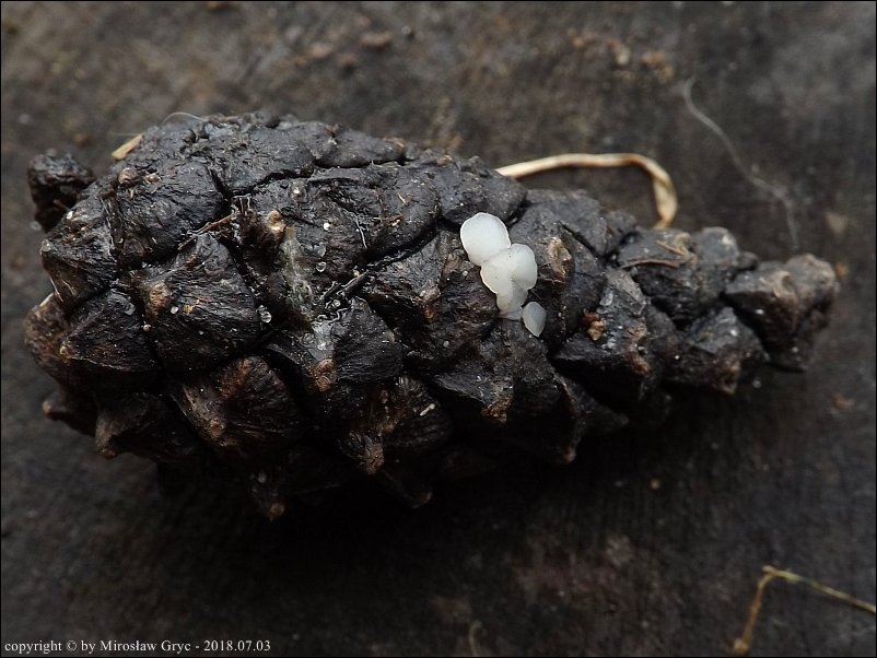Substrat: Owocniki na sosnowej szyszce leżącej a wilgotnej ziemi, na brzegu wyrobiska.