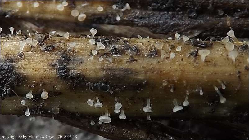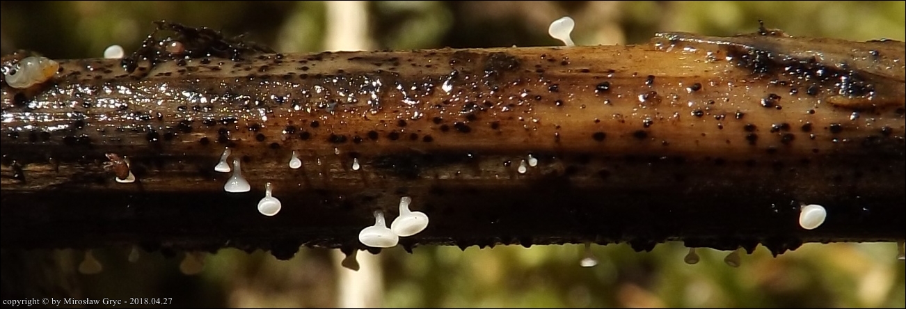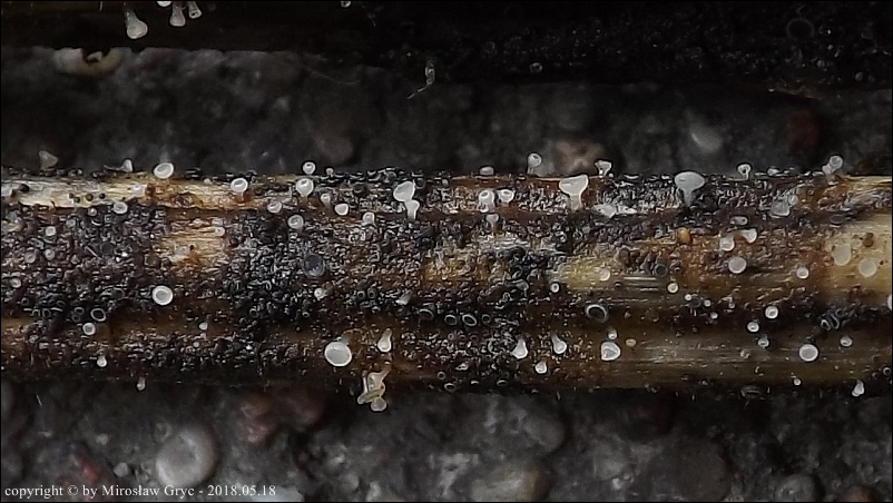 Substrat: Owocniki na ubiegłorocznym pędzie rośliny zielnej, leżącym w wilgotnym miejscu.