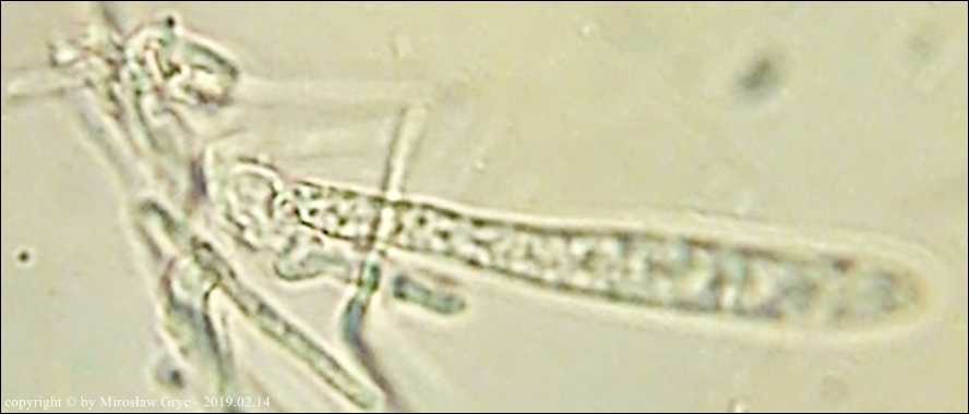 Substrat: Owocniki na martwych pędach żarnowca miotlastego (Cytisus scoparius) .