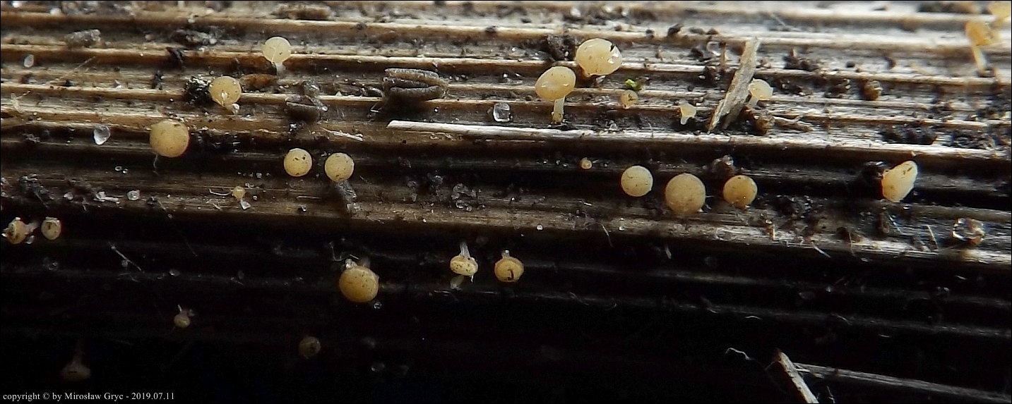 Substrat: Owocniki na ubiegłorocznych liściach Iris pseudacorus .