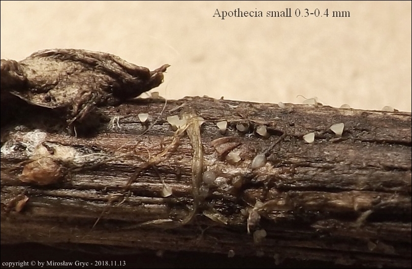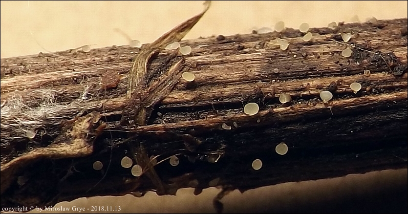 Substrat: Owocniki na ubiegłorocznych pędach łubinu trwałego (Lupinus polyphyllus) rosnącego na skraju lasu.