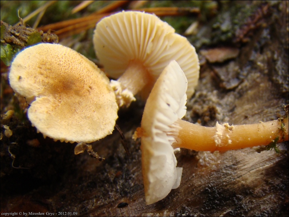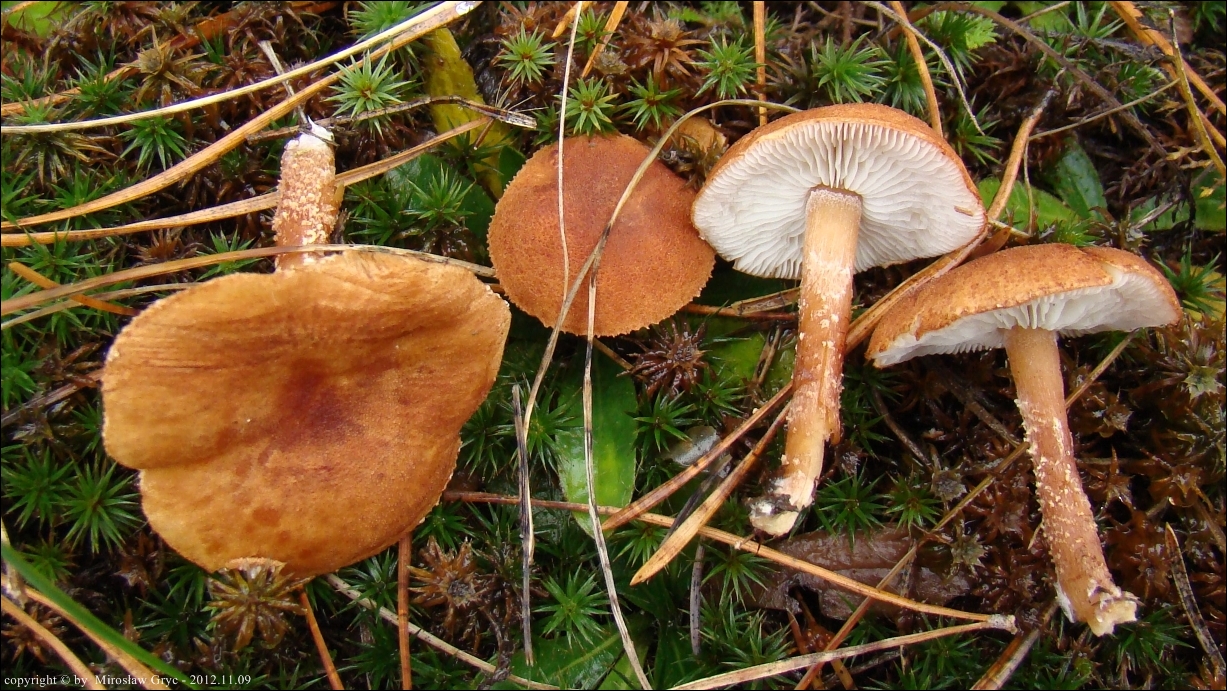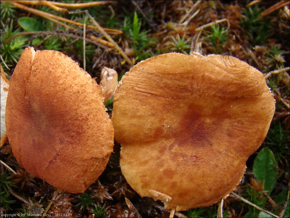 | 2015.11.09 | Ogrodniczki, kilkaset metrów E (około 0,5km). | Nieużytki rolne z rzadka zalesione sosną; ziemia gesto porośnięta mchami. Numer wątku na Bio-Forum: 33/806029. Mikroskopował Błażej Gierczyk. Lokalizacja stanowiska bardzo bliska kolekcji z dnia; 2012.11.09. Publikacja: Błażej Gierczyk, Mirosław Gryc (2024). Materiały do poznania grzybów podstawkowych Puszczy Knyszyńskiej i jej przedpola. Przegląd Przyrodniczy XXXV, 2 (2024): 3-65 (jako: Cystodermella granulosa var. granulosum). |