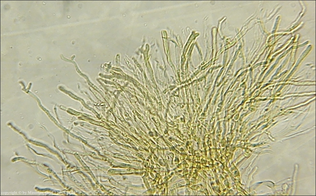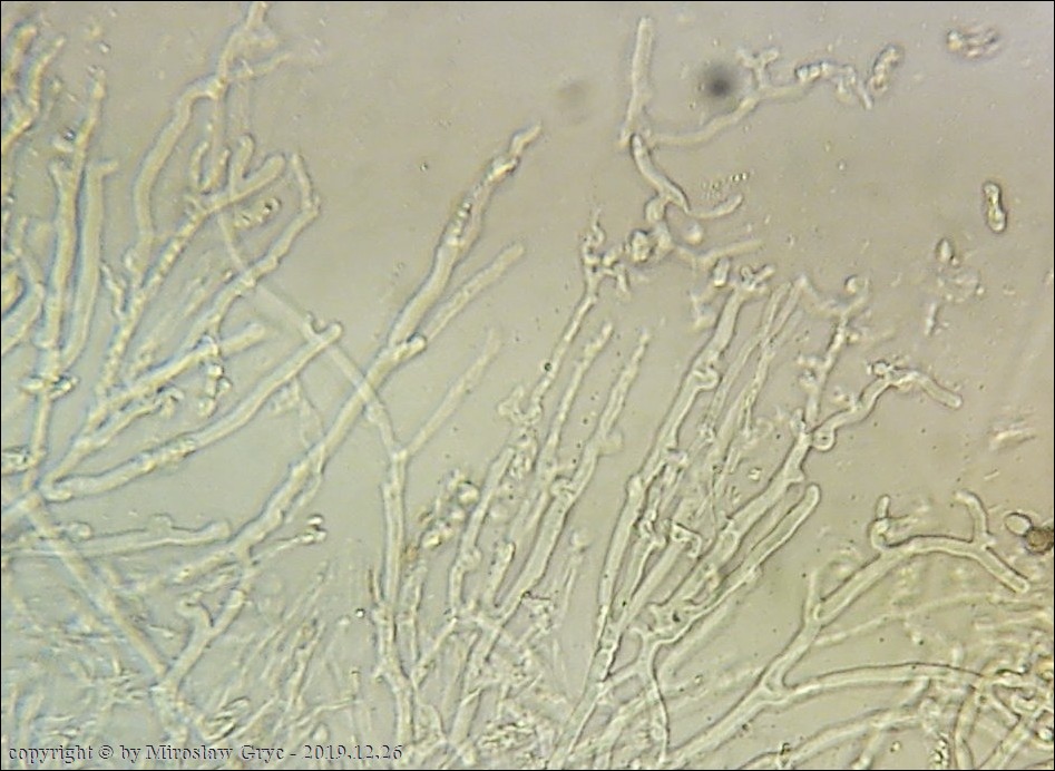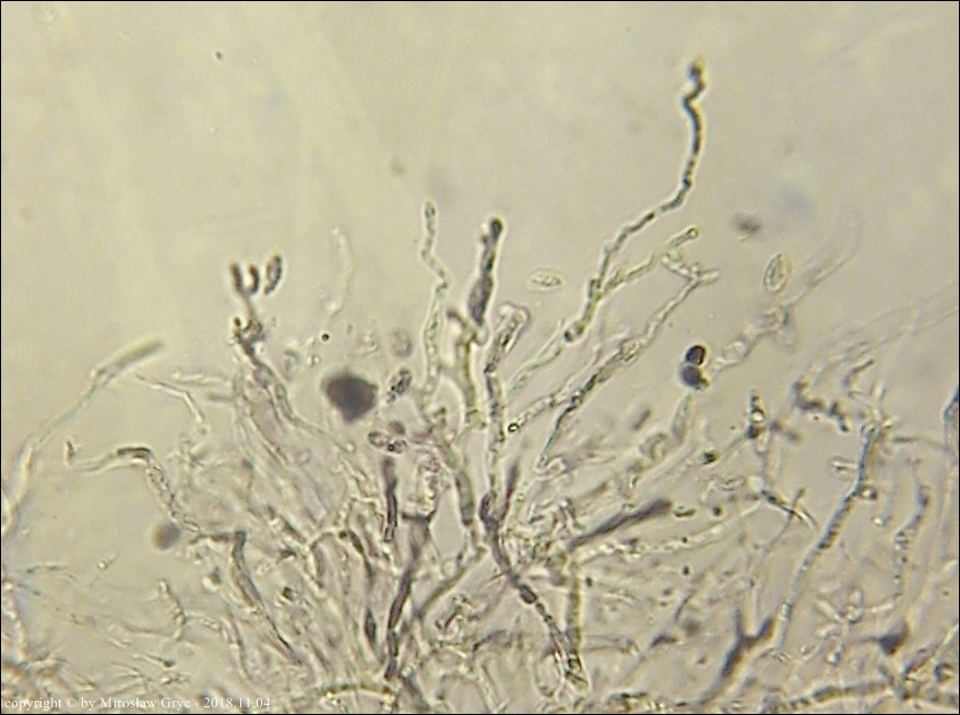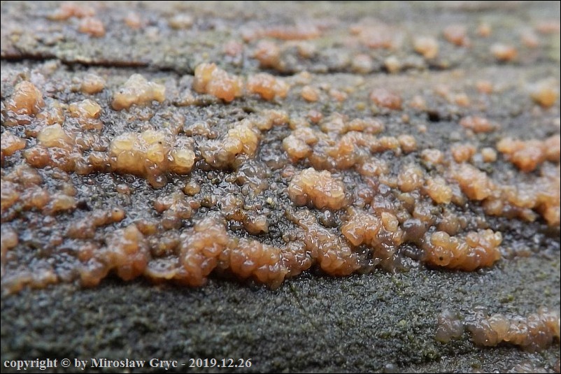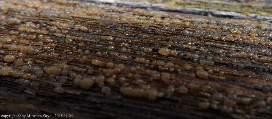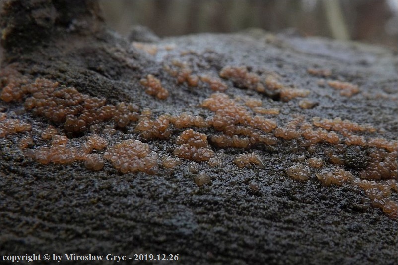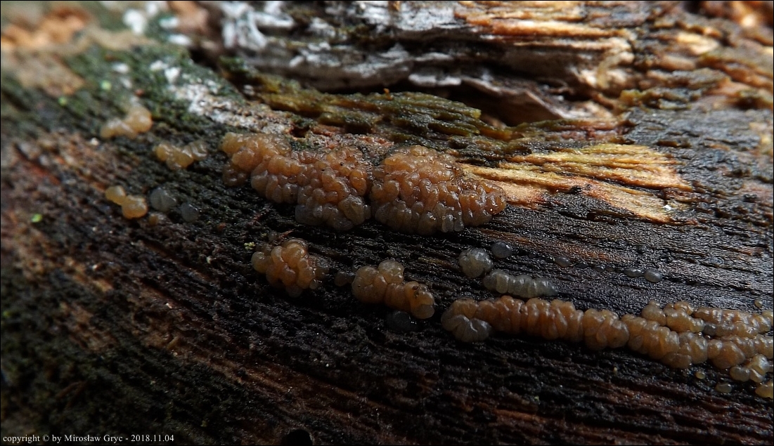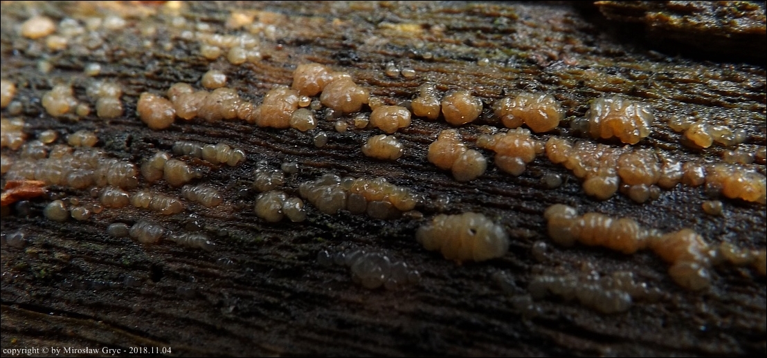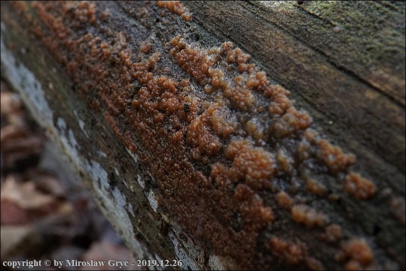 Substrat: Owocniki masowo na leżącym na ziemi pniu olchy (Alnus sp.) .