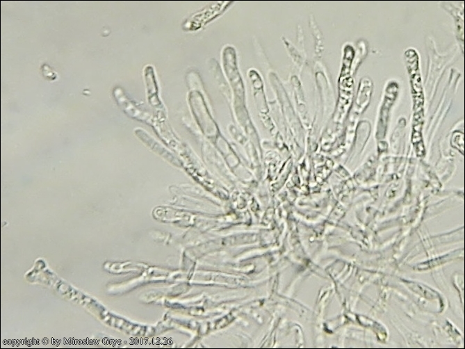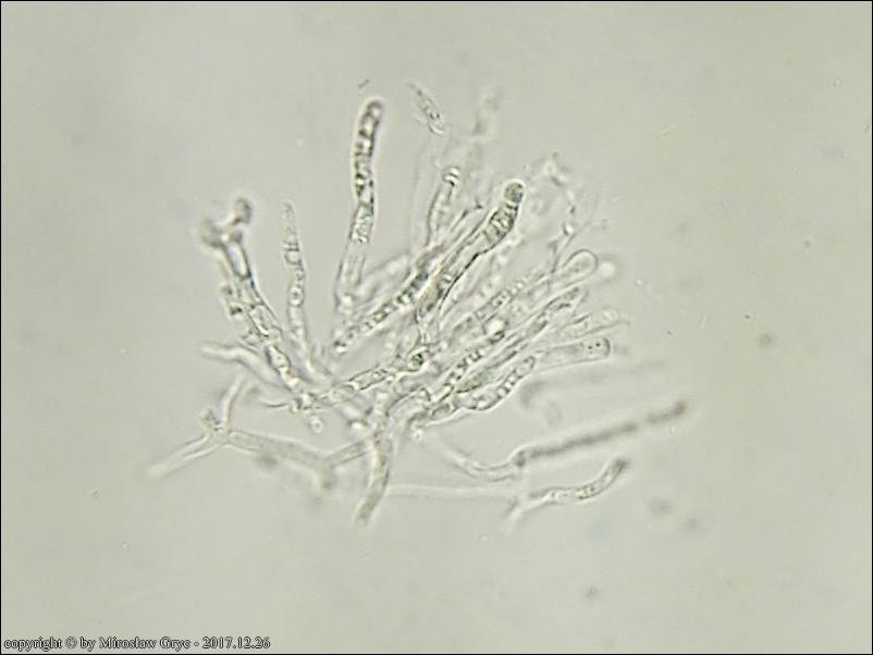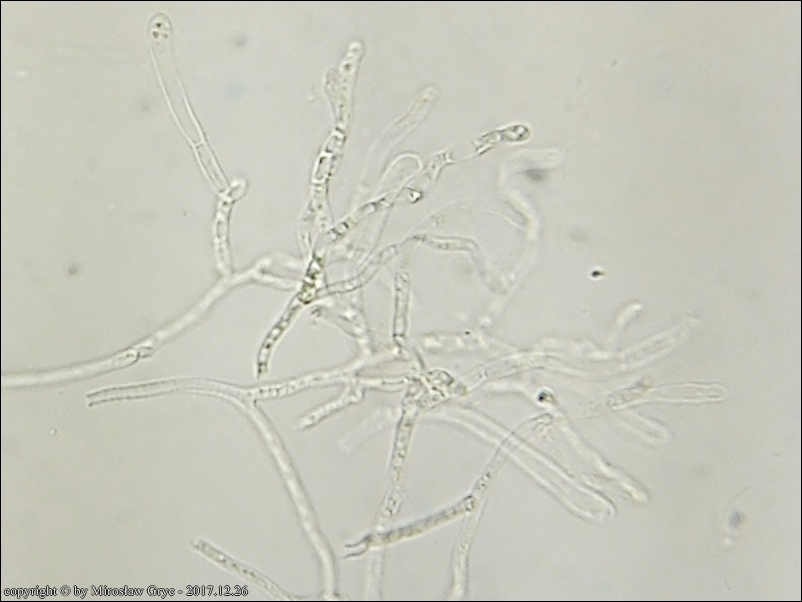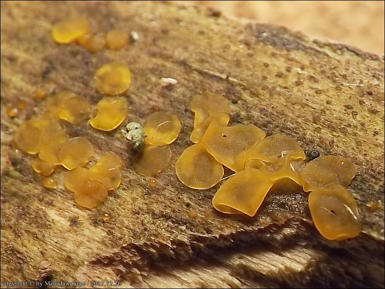 Substrat: Owocniki na kawałku gałęzi niewiadomego pochodzenia.
