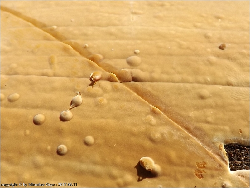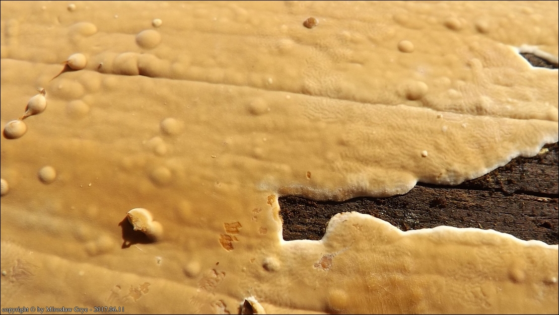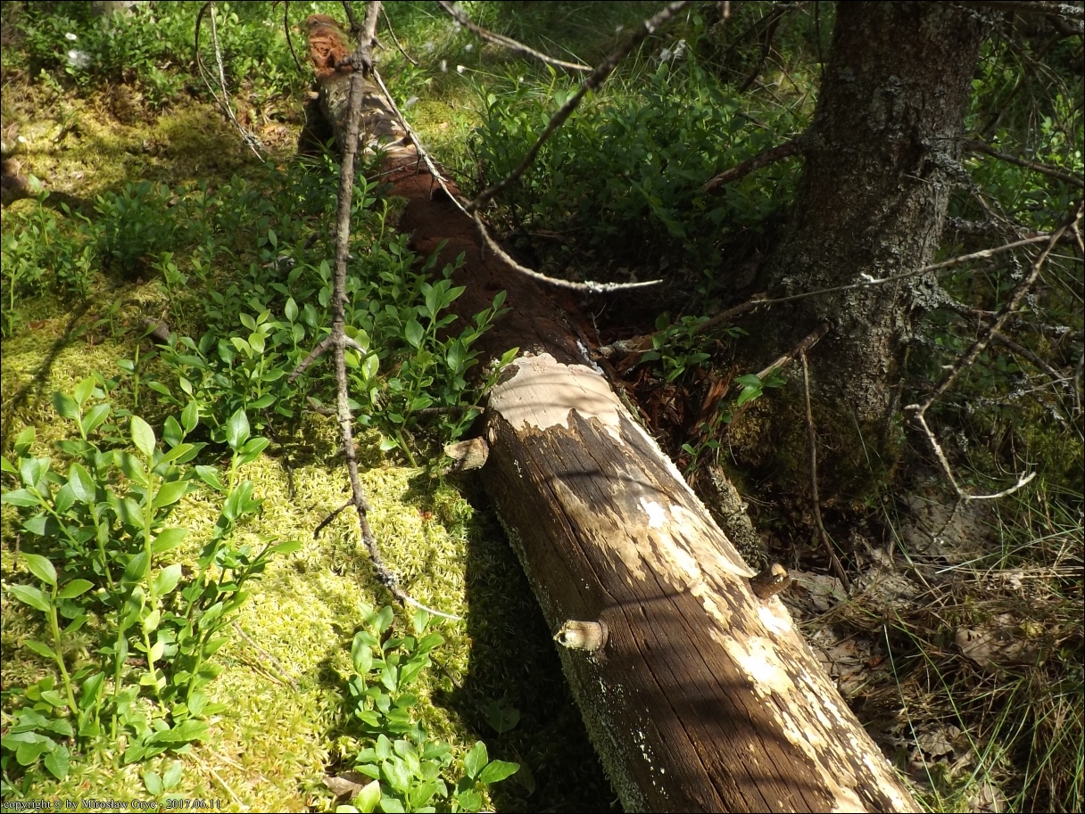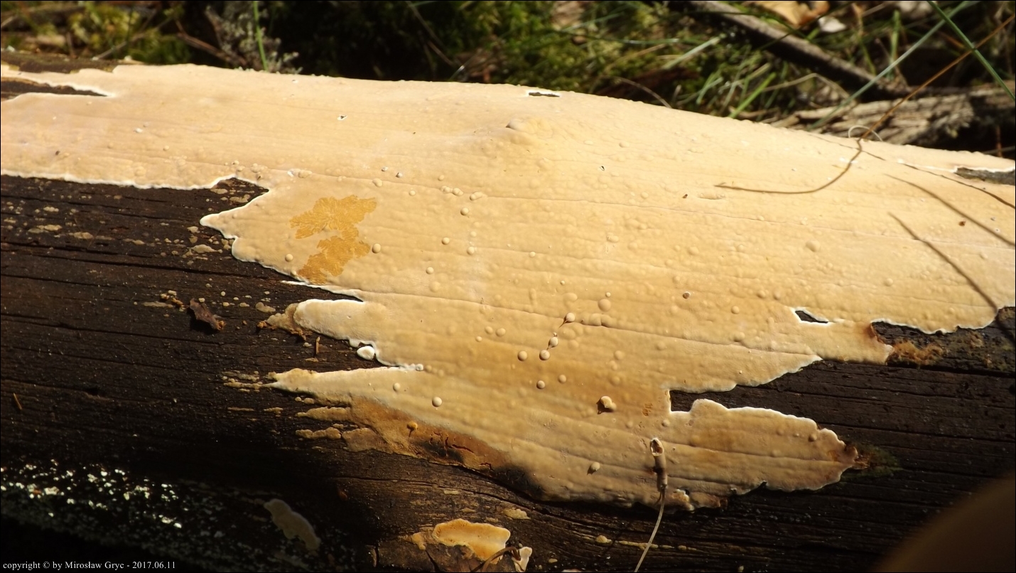 Substrat: Owocniki na dolnej stronie, leżącego na wilgotnym mchu pniu sosny, pozbawionym już kory.