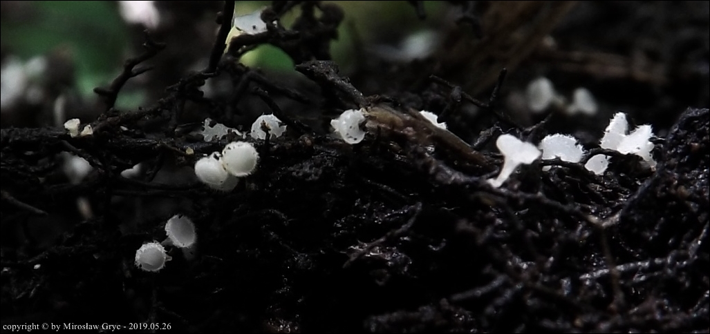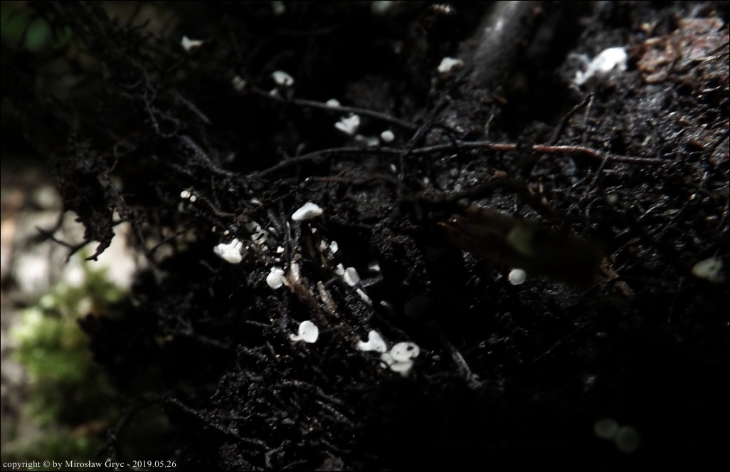Substrat: Owocniki na cienkich korzonkach niezidentyfikowanego krzewu.