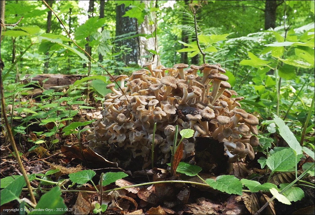 Wyrasta na korzeniach drzew liściastych, buka, dębu, klonu, grabu.