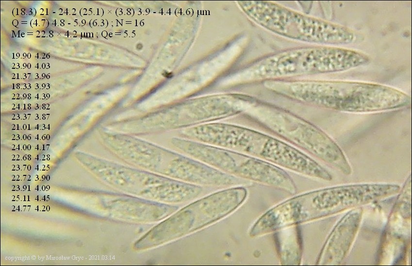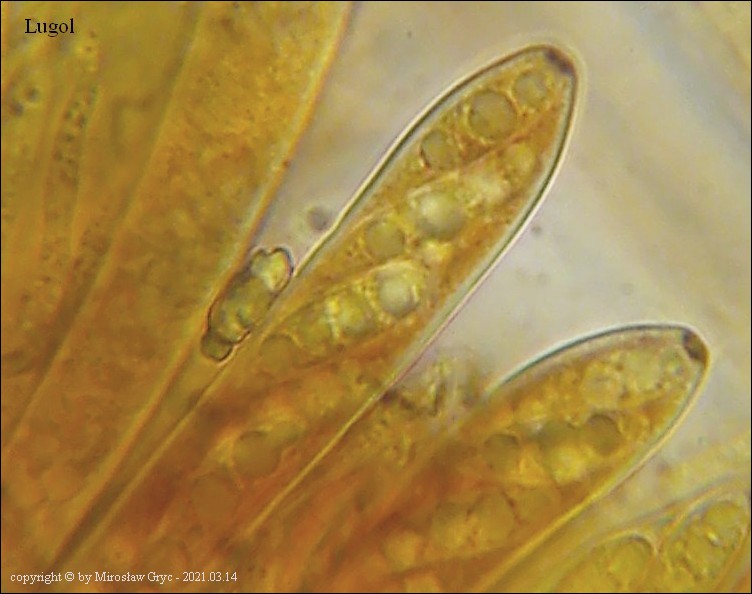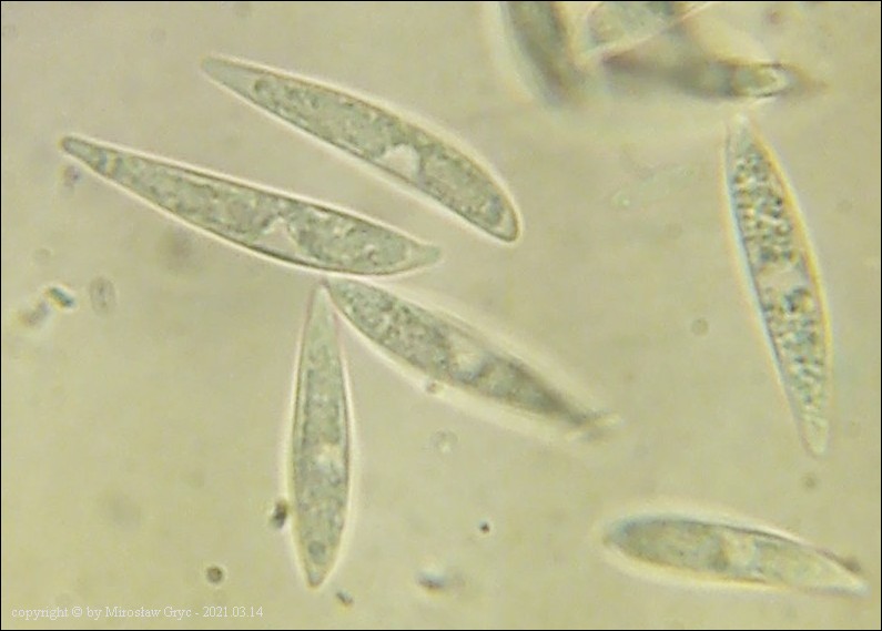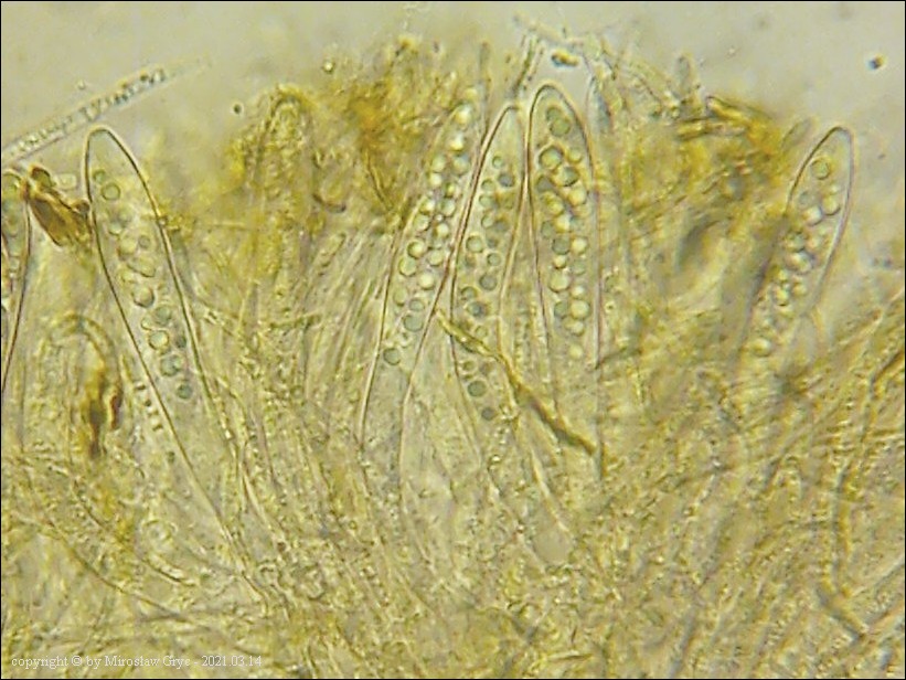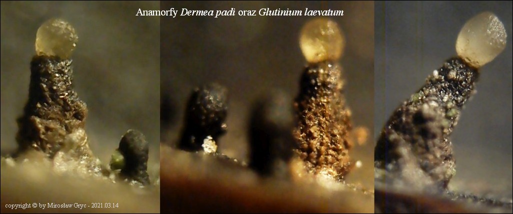 Dermea padi oraz Dermea prunastri sa bardzo podobnymi gatunkami o ile nie tym samym. Zdania w tym względzie są mocno podzielone i jak do tej pory brakuje danych aby jednoznacznie odpowiedzieć na to pytanie. Część osób dzieli te gatunki w zależności od "gospodarza", wobec tego, też taki podział przyjmuję do czasu wyjaśnienia. Ze względu na zły stan kolekcji zmierzono tylko kilka zarodników: (14.9) 16.6 - 17.9 (19.1) × (4.6) 4.7 - 5.1 (5.6) µm. Przyczyną tego zapewne były silne mrozy występujące w tym rejonie kraju. W przypadku znacznej ilości znalezionych kolekcji gatunek ten współdzielił substrat z Glutinium laevatum. Obok siebie występowały zarówno anamorfy jak i telemorfy tych obu gatunków. O ile anamorfy były w doskonałym stanie to telemorfy uległy prawdopodobnie przemrożeniu. Temat wymaga dalszych obserwacji!Galeria zdjęć