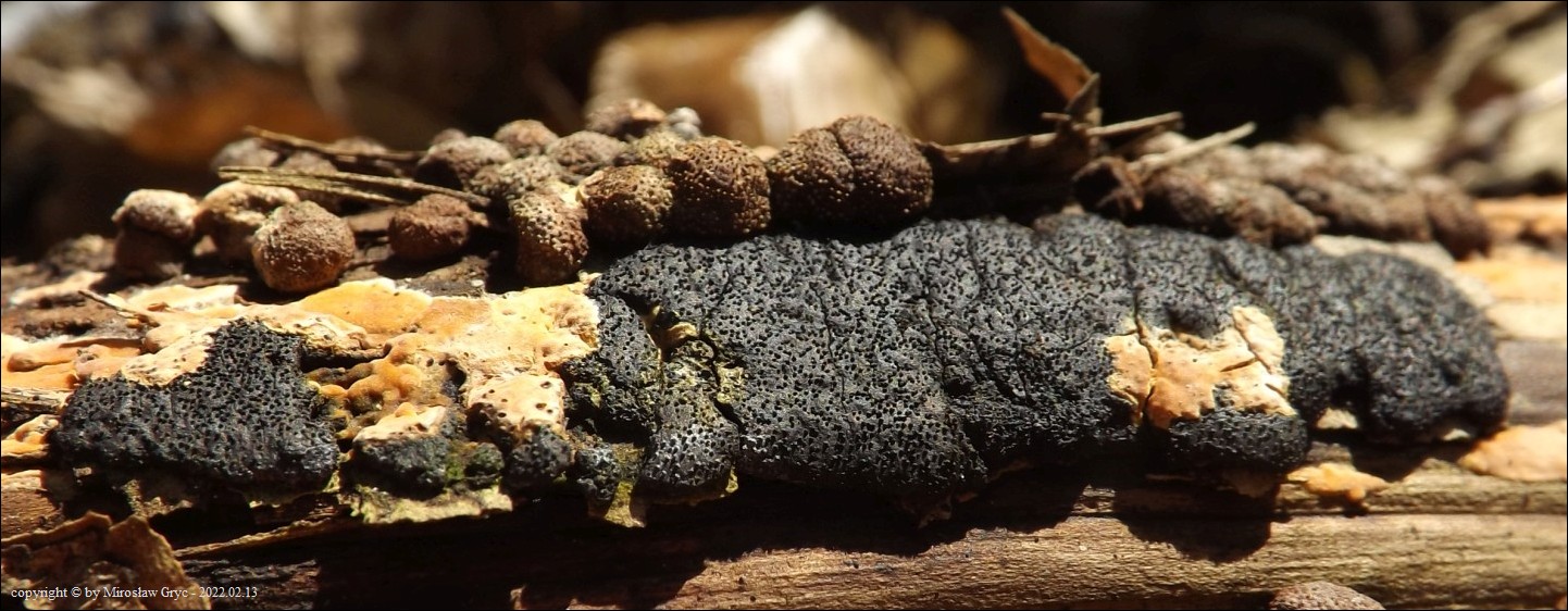 Substrat: Owocniki na martwych gałęziach grabu pospolitego (Carpinus betulus) .