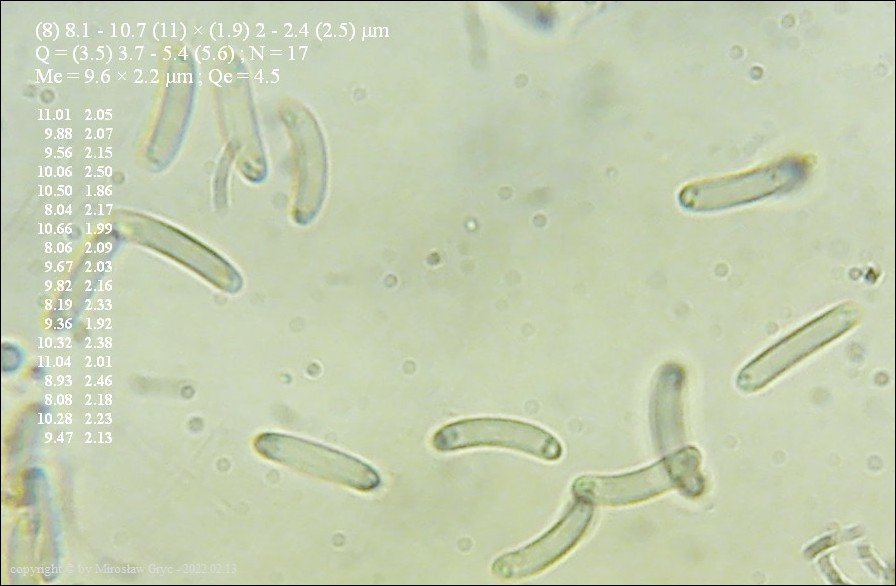 Posiłkując się tą pracą oraz następną Andrzeja Chlebickiego z 2005 roku, "Some species of the genus Diatrype from the Czech Republic preserved in PRM, BRNM and KRAM" można brać pod uwagę dwa gatunki które występują na grabie pospolitym: D. subaffixa var. rappazii oraz D. subaffixa dla których podaje podobne wymiary zarodników, pasujące do mojej kolekcji.