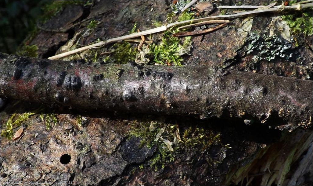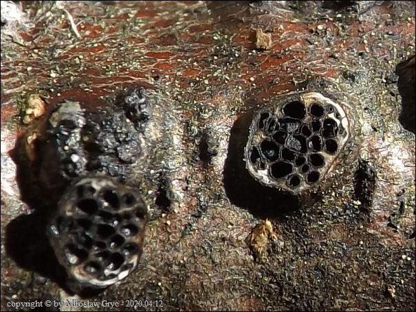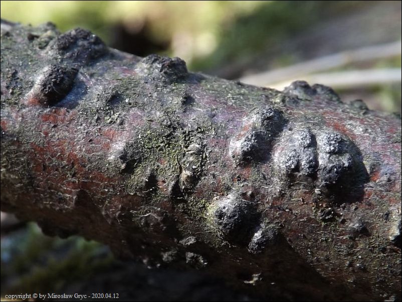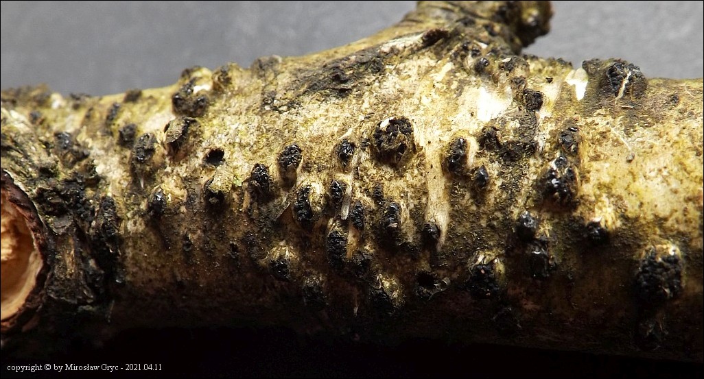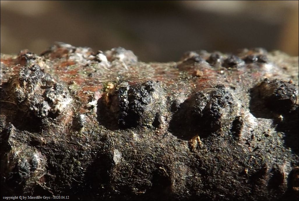 Substrat: Owocniki na gałęzi olszy (Alnus sp.) leżącej na sciółce.
