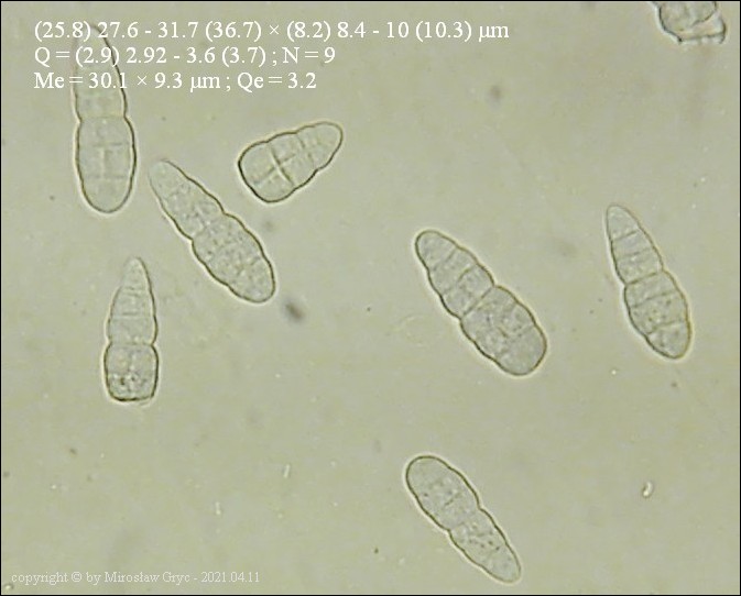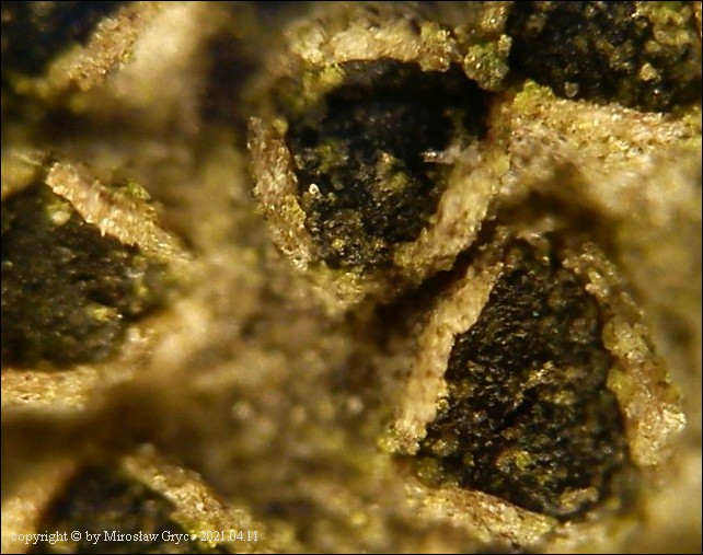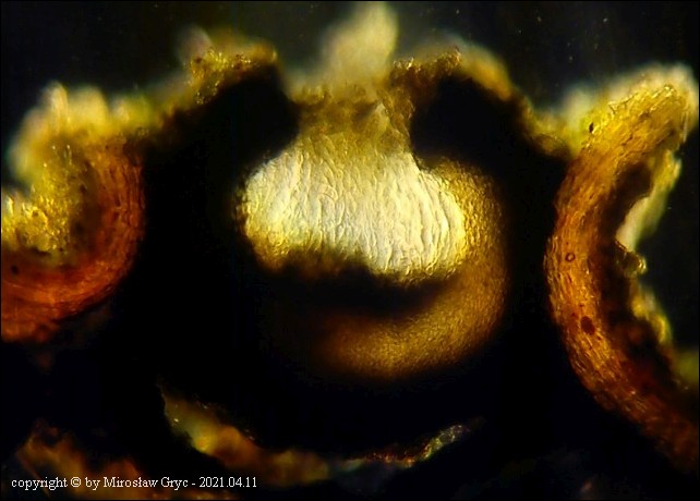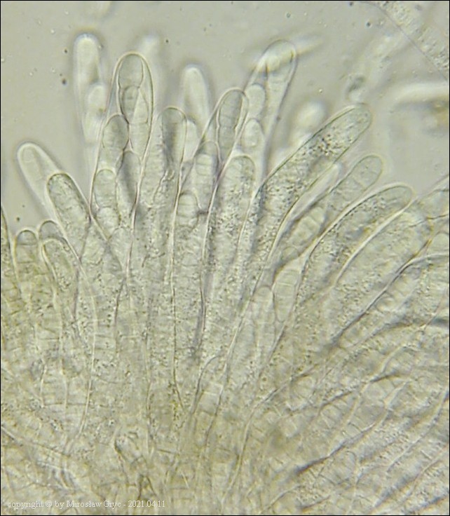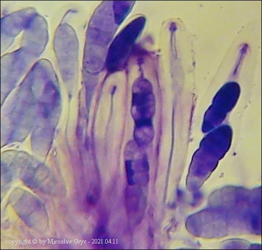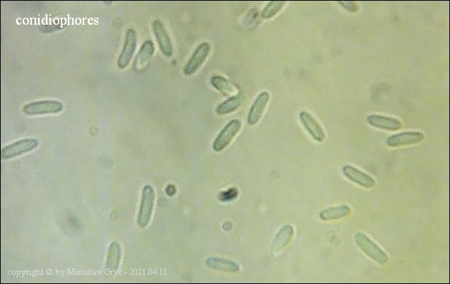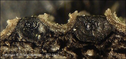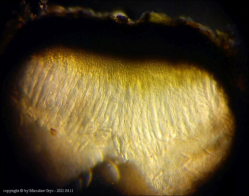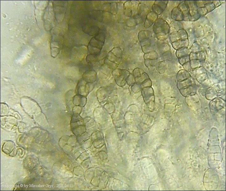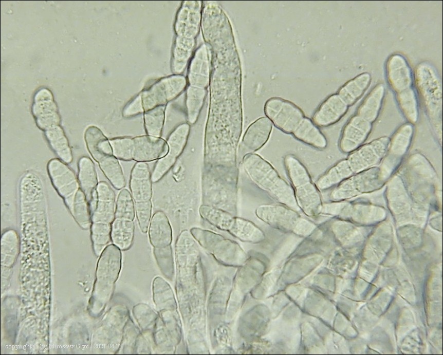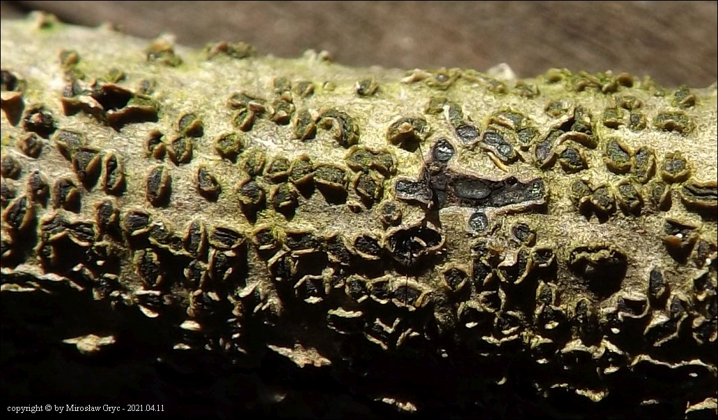 Substrat: Owocniki na martwej, cienkiej (około 1 cm średnicy), gałązce topoli (Populus sp).