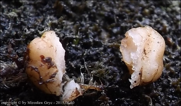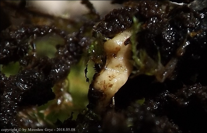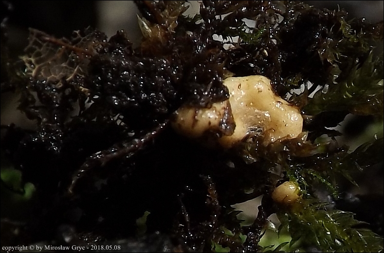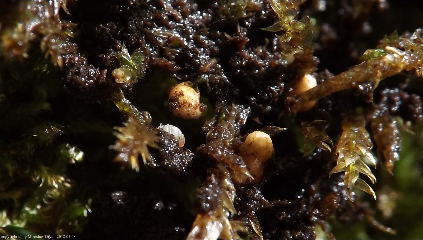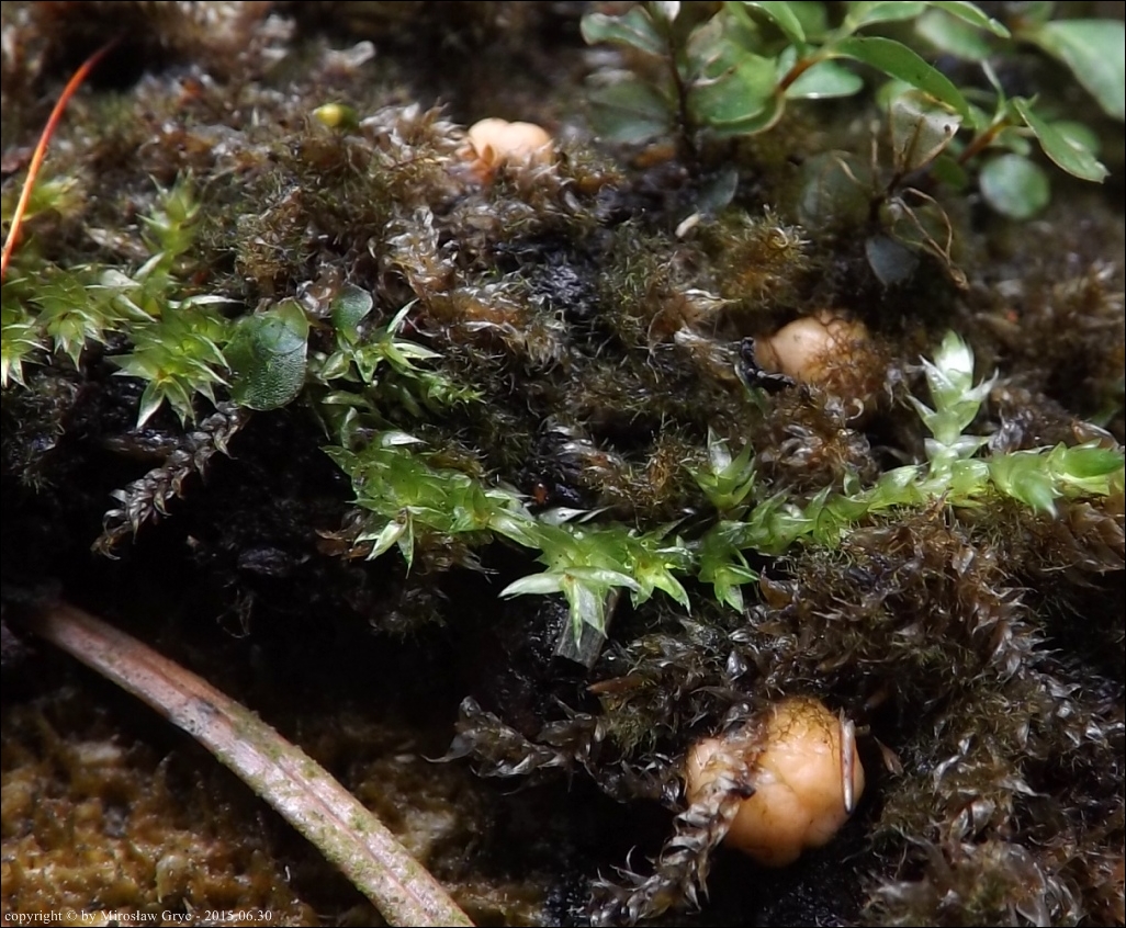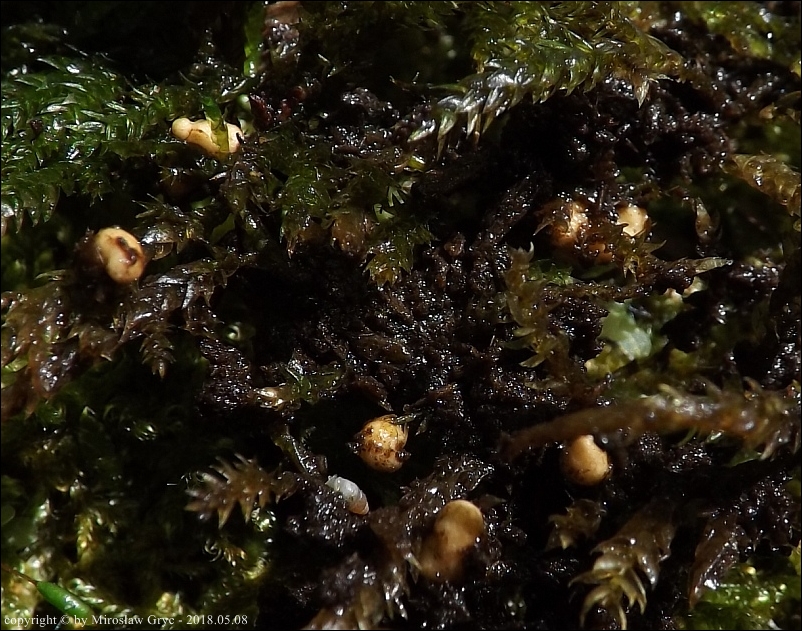 Substrat: Owocniki na mchach porastających fragment drewna leżącego w korycie strumienia.