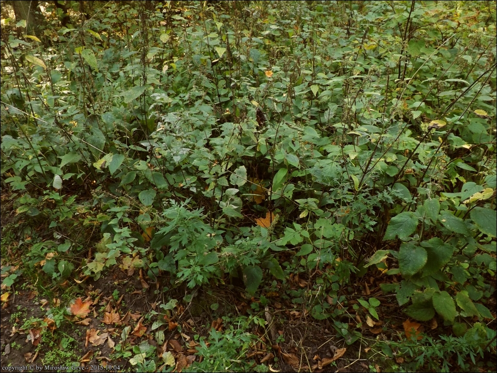 Siedlisko: Liściaste zadrzewienie na skraju lasu, mocno zachwaszczone.
