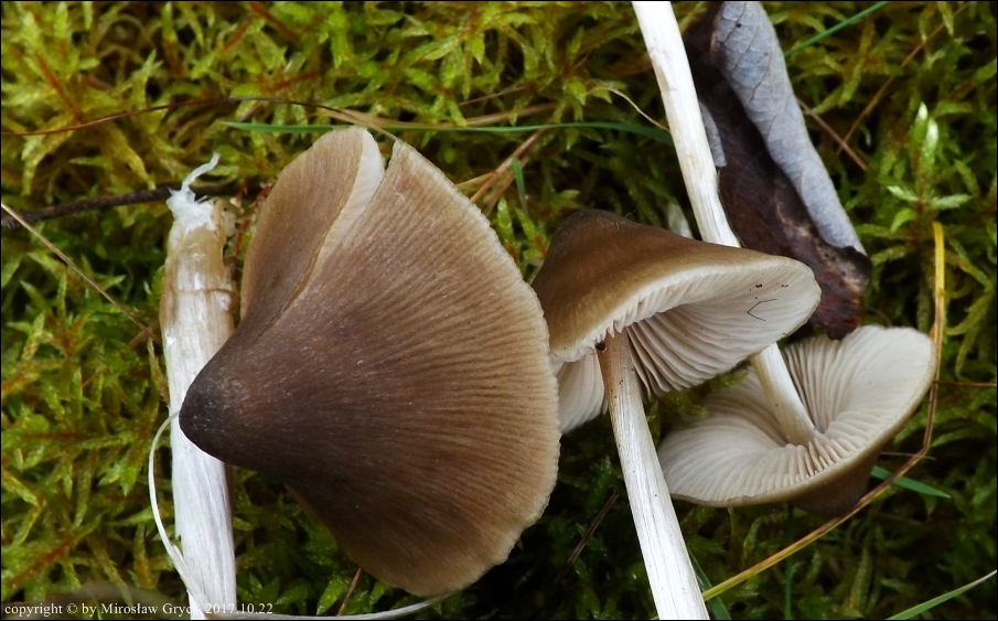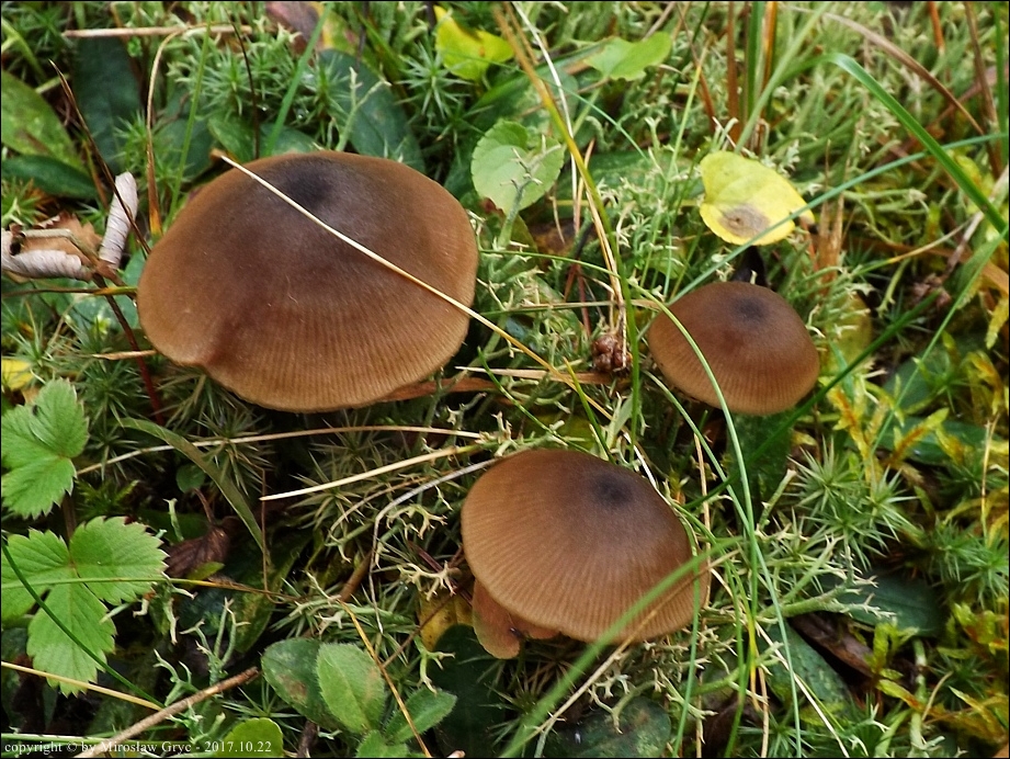 Substrat: Kilka owocników na terenie otwartym, podłoże piaszczyste porośnięte mchami i trawami.