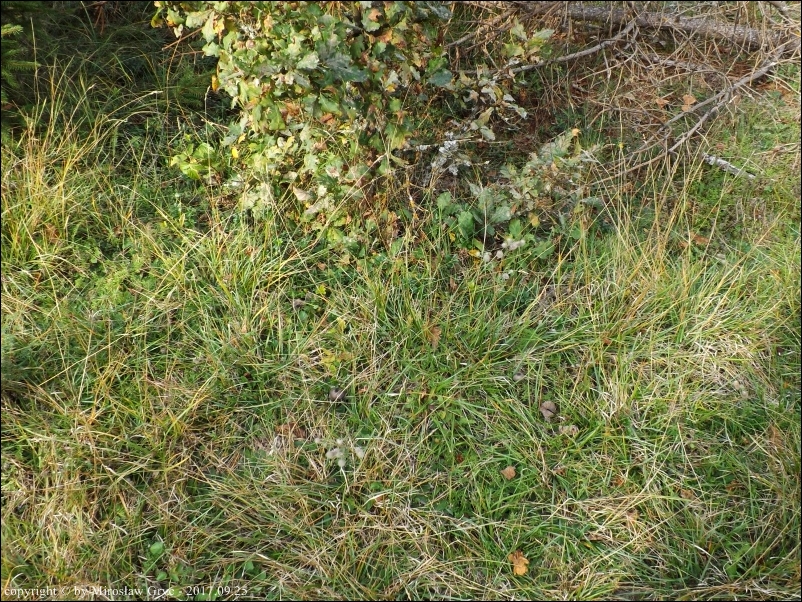 Substrat: Owocniki na ziemi wśród mchów i innej niskiej roślinności, podłoże piaszczyste.
