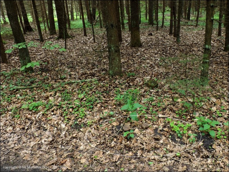 Siedlisko/Substrat: Granica dąbrowy i lasu świerkowego, przydroże; ściółka pod świerkami.