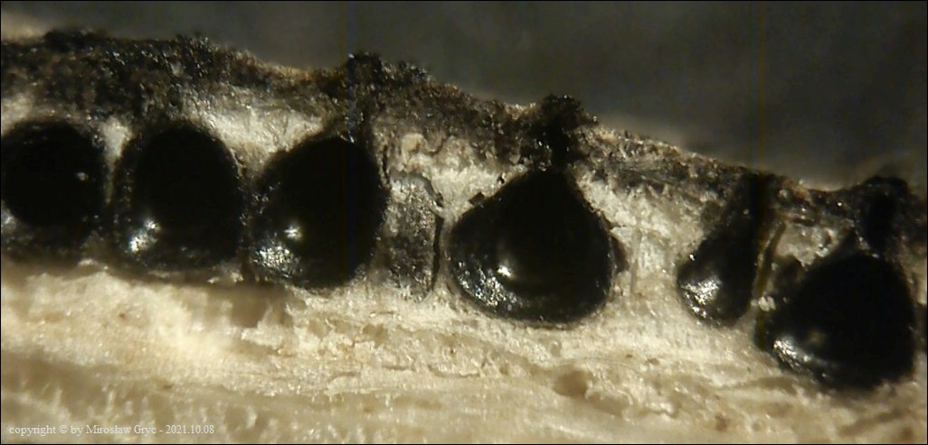 Substrat: Owocniki na okorownym pniu powalonego jesionu (Fraxinus sp.) , w średnim wieku.