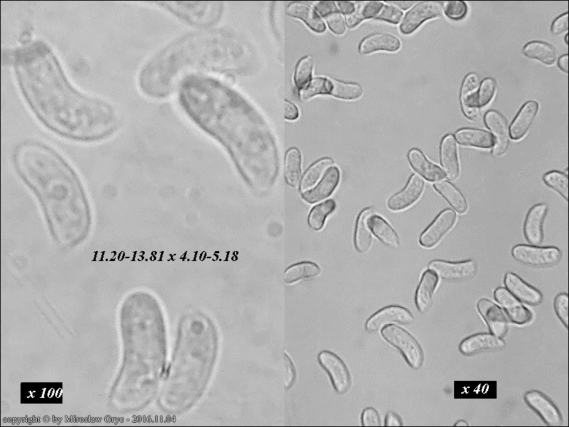 Zarodniki cylindryczne, o wymiarach 10-13x3,5-5 µm.