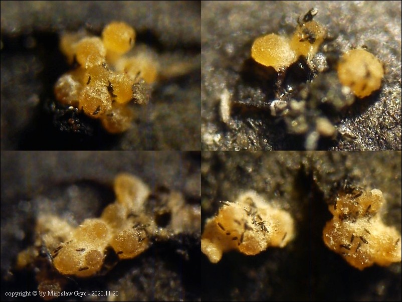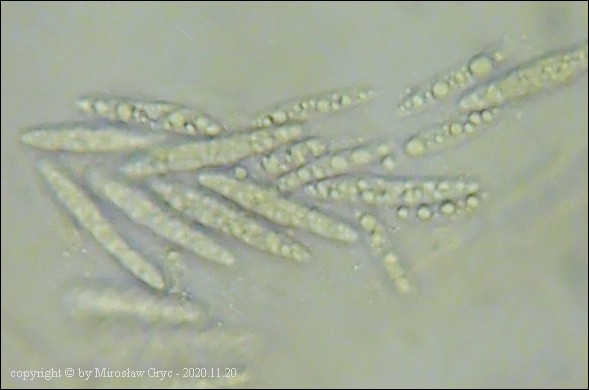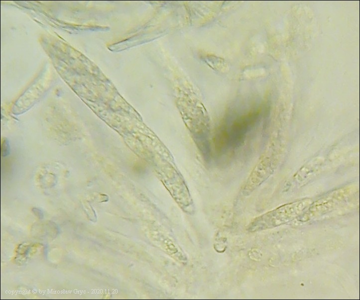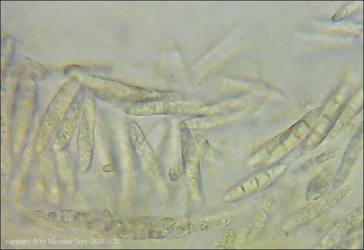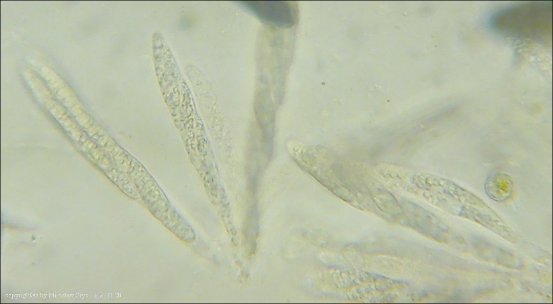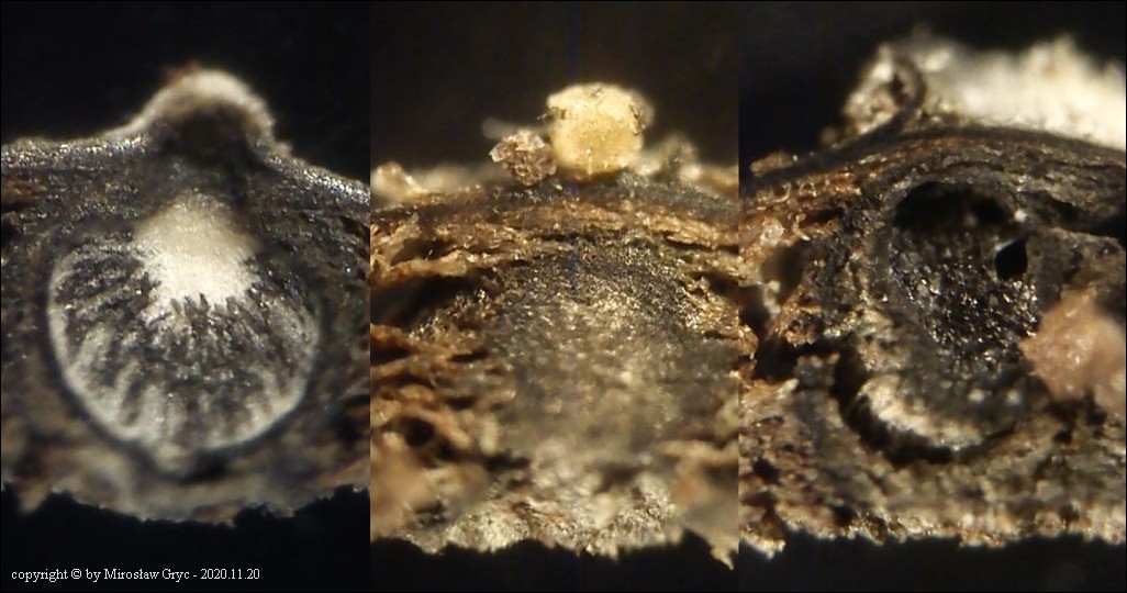 Substrat: Martwe gałęzie czeremchy (Prunus padus). Owocniki pasożytujące na podkładkach Massaria conspurcata.