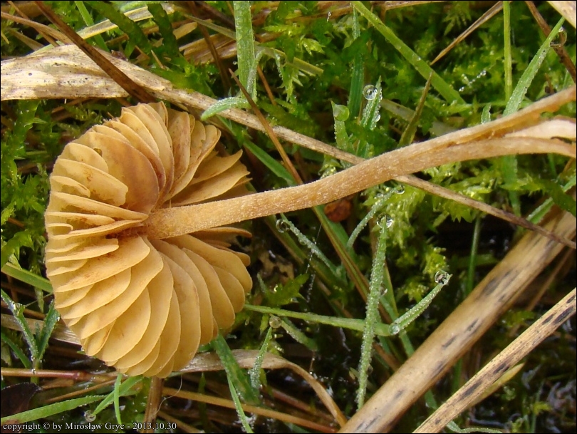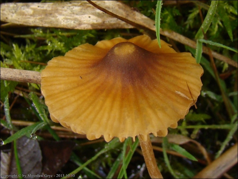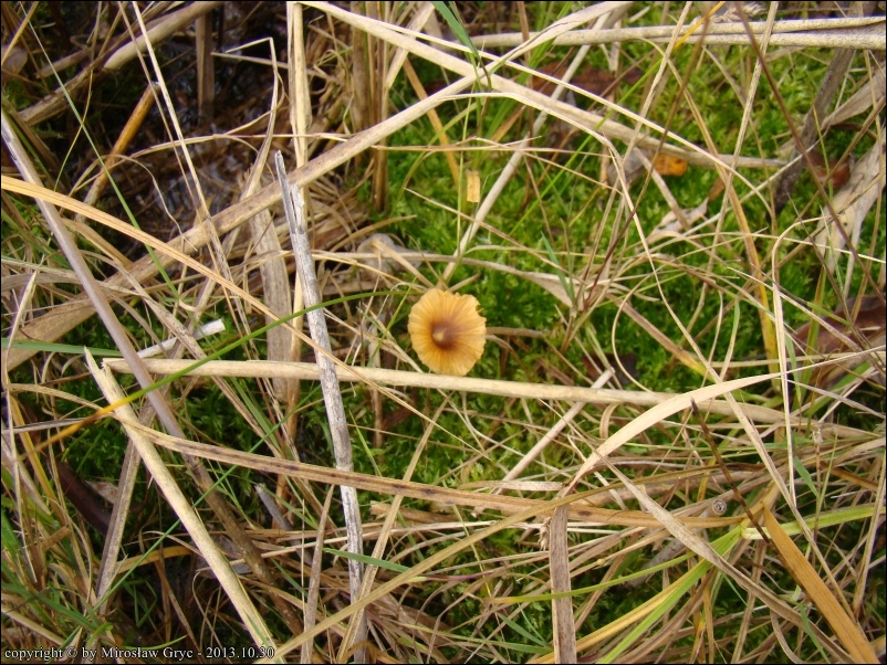 Substrat: Jeden owocnik tuz przy lustrze wody, w trzcinowisku, na podłożu porośniętym mchami.