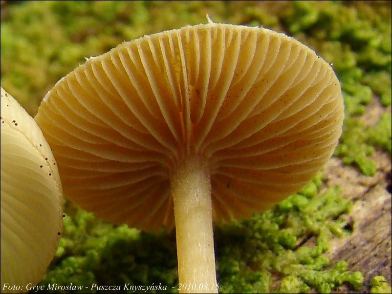 Wyrasta na mchach torfowcach. Uznawany za gatunek rzadki ale zarazem dość często występujacy w odpowiednich dla siebie siedliskach. Do jej zanikania przyczynia się działalność człowieka polegająca na wysuszaniu terenów podmokłych. Również, być może mało zauważalna, ze względu na niedostępność terenów na których występuje. Rodzaj wśród którego na próżno szukać grzybów jadalnych. Można za to, z łatwościa spotkać gatunki niejadalne a nawet śmiertelnie trujących. Przeważnie o bardzo małych owocnikach. Znana u mnie, ze stanowiska położonego w uroczym ale nieprzyjaznym zakątku Puszczy Knyszyńskiej. Miejsce oddalone około 6 km. w kierunku wschodnim od Supraśla. Śródleśne bagno gdzie każdy krok należy stawiać z rozwagą. Przejście ułatwiają powalone pnie drzew, tylko dzięki którym możliwe jest dotarcie wgłąb błotnistego torfowiska. Babrzysko dla dzików i ostoja dla innej leśnej zwierzyny. Miejsce porośnięte grubą warstwą mchów, tworzących swoistego rodzaju pływajacy kobierzec. Własnie wśród nich znajdują miejsce te grzyby. Nie jest to jednak jedyne miejsce jej występowania w rejonie Puszczy Knyszyńskiej. Takie urocze, dzikie zakątki znajduje się jeszcze również na terenach leśnictwa Krasny Las, tuż obok Suprasla. Wejście tam jednak jest możliwe, tylko podczas dłuższych okresów suszy. Tereny bardzo ciekawe po względem mikologicznym.