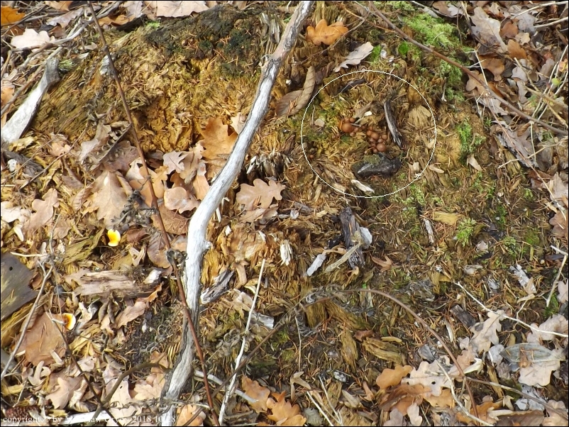 Substrat: Kilka owocników na próchnie ze zbutwiałego pniaka, niewiadomego pochodzenia.