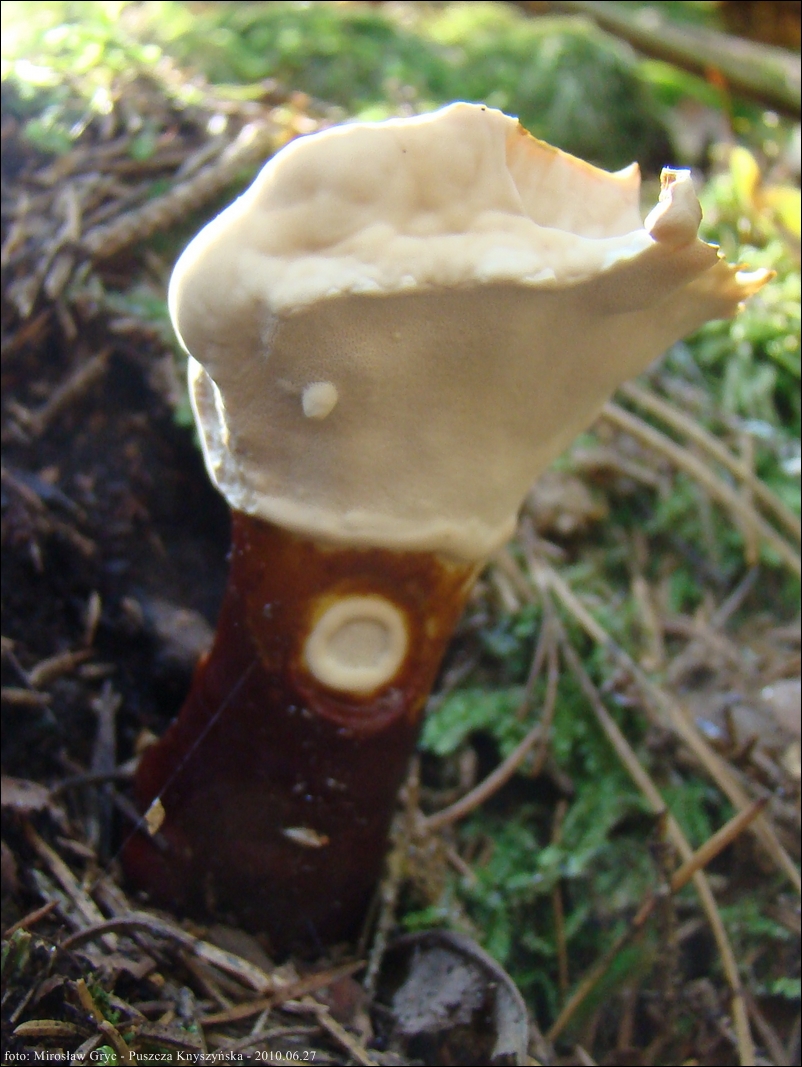 Trzon: barwy czerwonobrązowej do brazowej, koncentrycznie rowkowany, guzkowany.