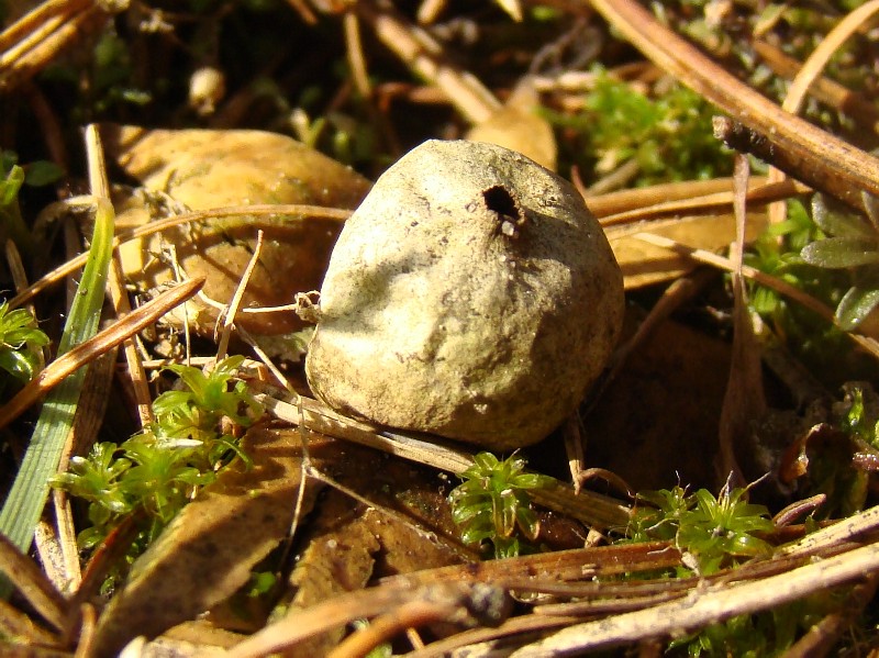 Owocnik: w stadium poczatkowym w formie prawie kulistej, całkowicie ukryty w podłożu, o wymiarach od 1 do 2 cm; w dolnej części owocnika ze splotem grzybni przerośniętej z podłożem.