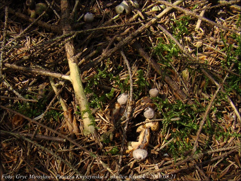 | ID: 195910 z dn. 2011.10.13 (ATPOL: GC-04) | Około 1 km na SW od Krynek. | Las iglasty (sosna, świerk), na ziemi, w grupie kilka owocników.