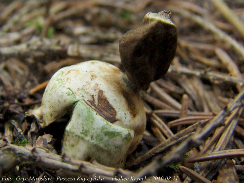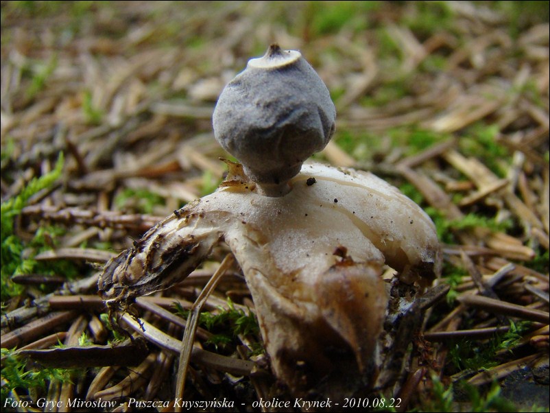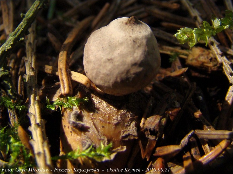 Kolumella: słupkowata, brązowoszara, sięga do połowy wysokości endoperydium.