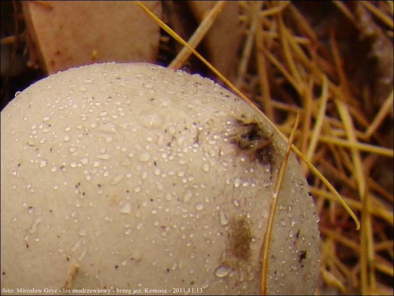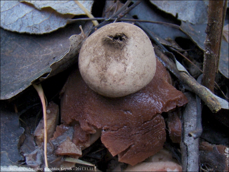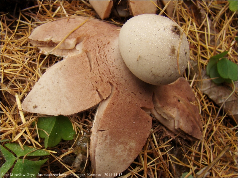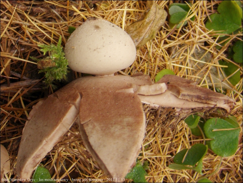 | 2016.07.30 | Ogrodniczki, 0,5 km E. | Skraj lasu, teren ruderalny, skarpa rowu, pod akacją. Wyrastał razem z Geastrum fimbriatum Mikroskopował Błażej Gierczyk. |