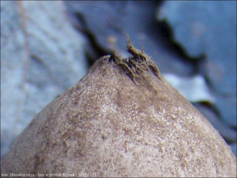| 2015.12.27 | Puszcza Knyszyńska, okolice Czołnowa. | Las mieszany; gruba warstwa ściółki przy zbutwiałym pniaku. Stanowisko zgłoszone do Krajowego Rejestru GREJ: ID 279340. Eksykat: BGF0005924.