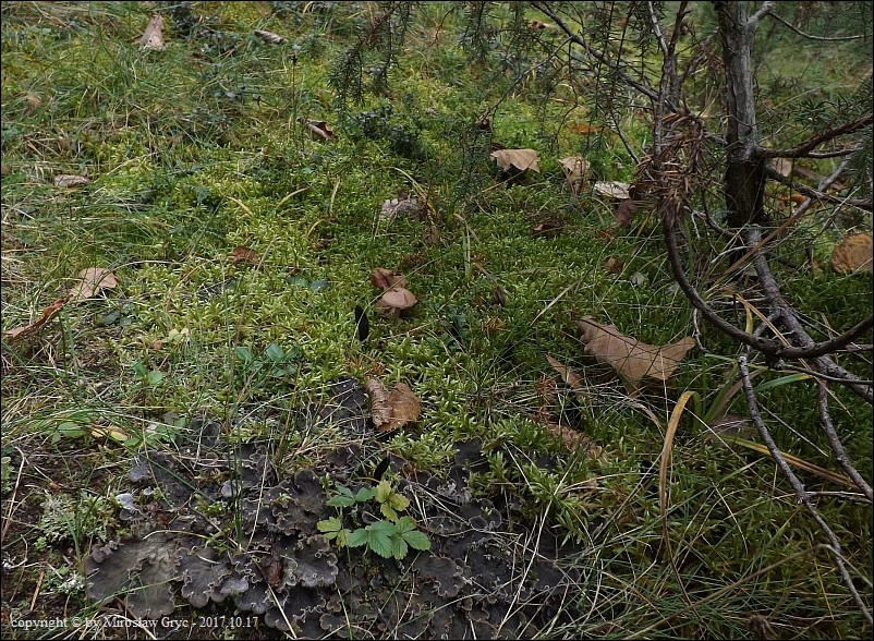 Siedlisko: Owocniki wyrastały masowo, na niewielkiej polance, porośnietej turzycami, wokół modrzewia.
