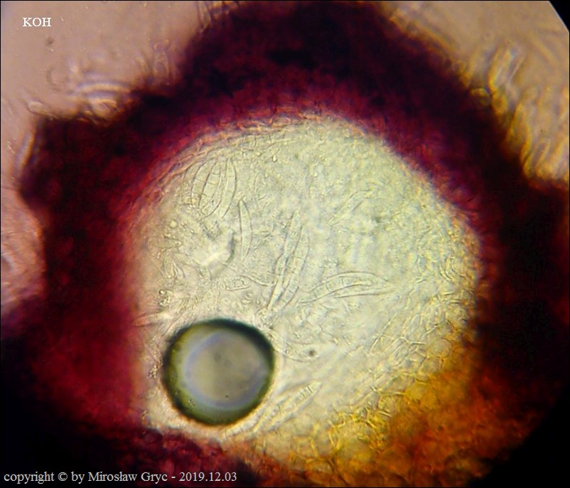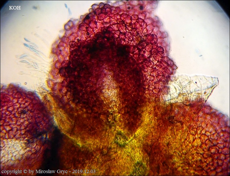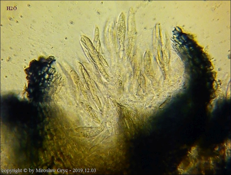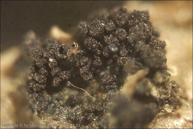 Substrat: Owocniki na martwej gałęzi liściastego, gatunek drewna nieznany.