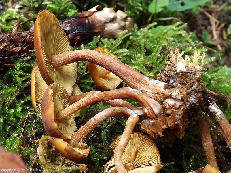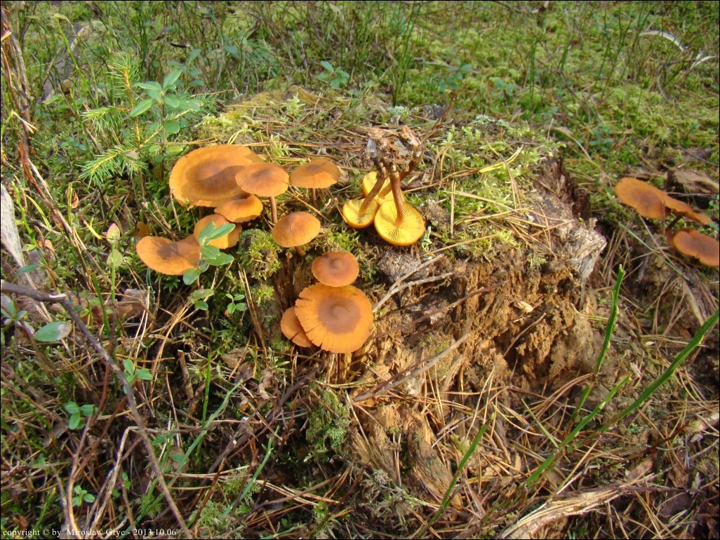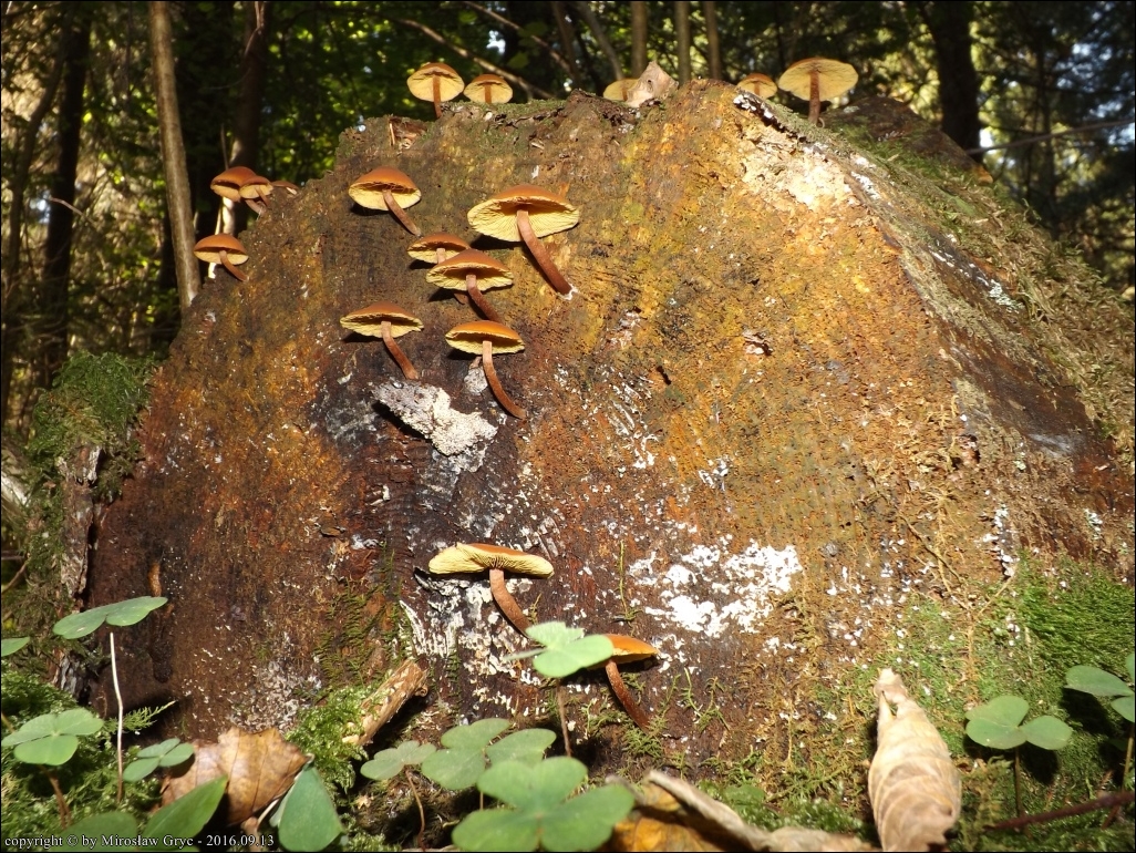 Substrat: Grupka owocników na mocno już zbutwiałym pniaku (świerk lub sosna).