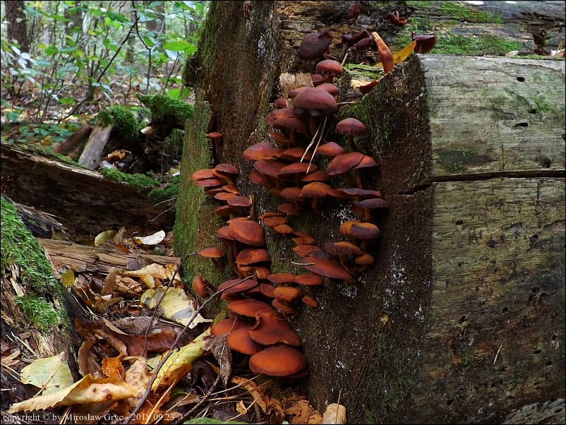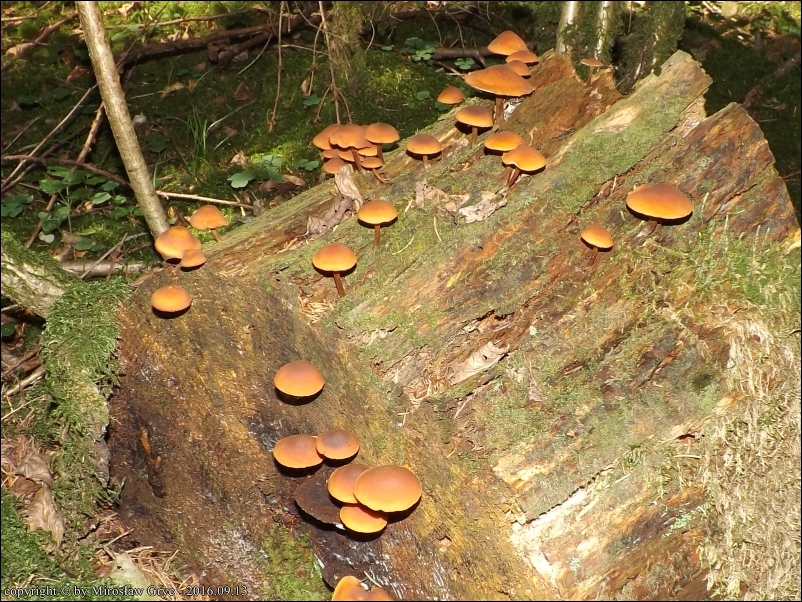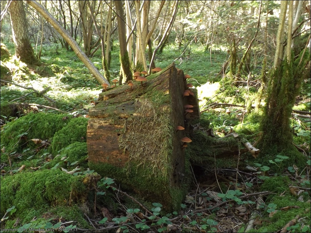 Substrat: Grupka owocników na pozostawionym w lesie odziomku świerka.