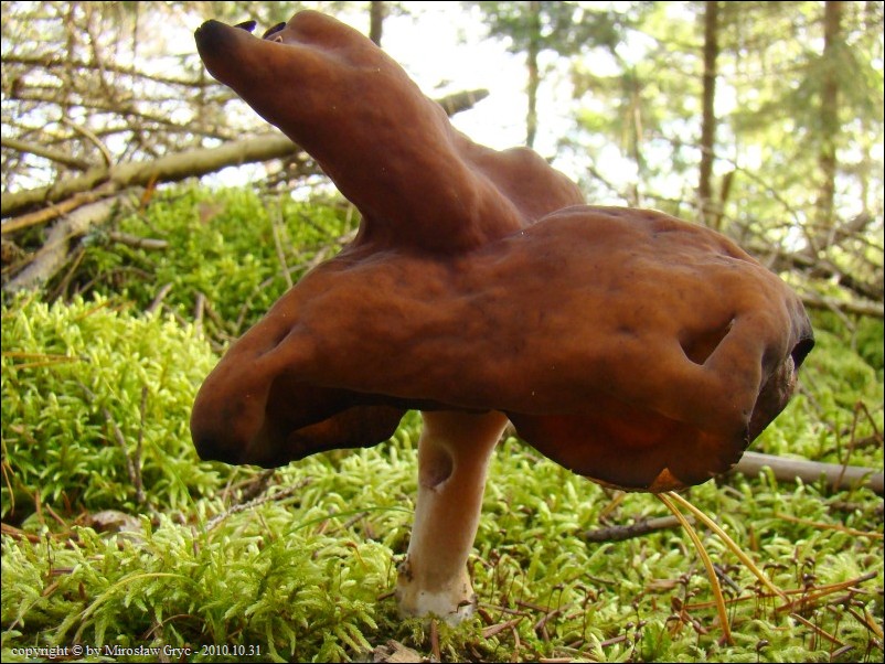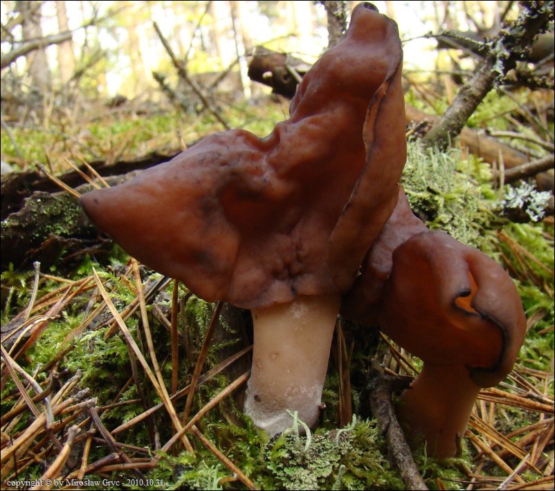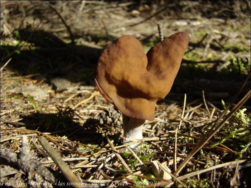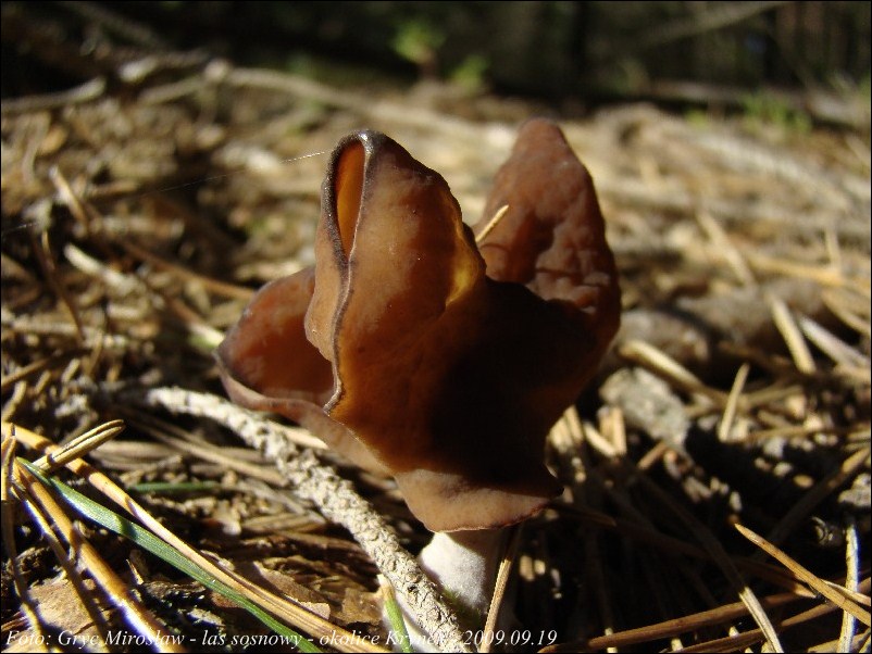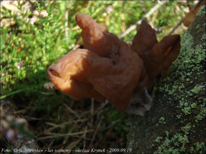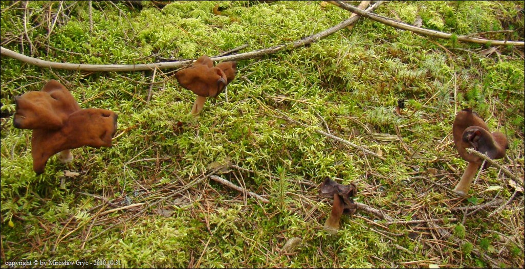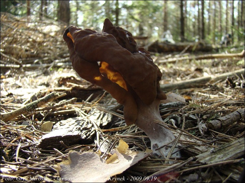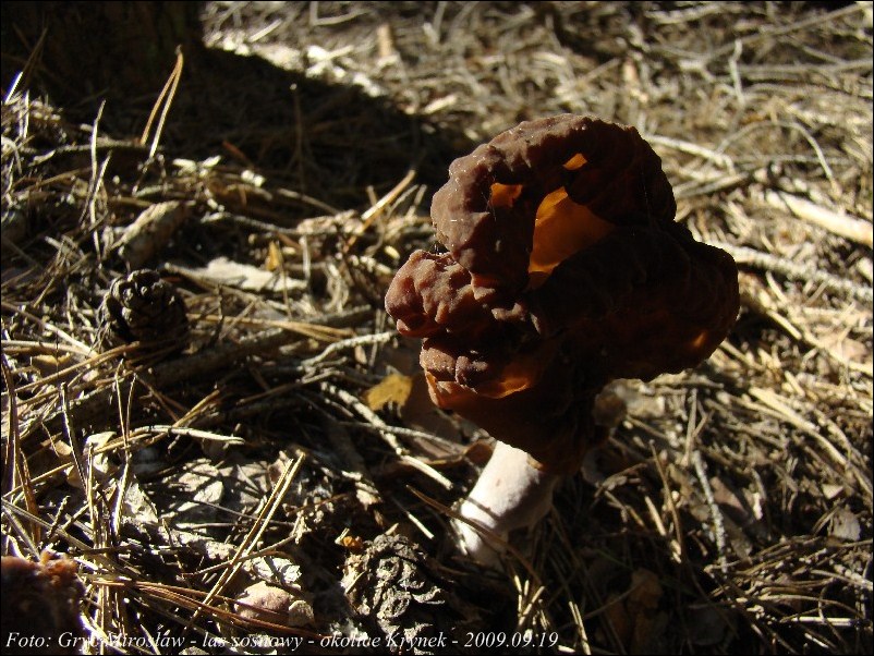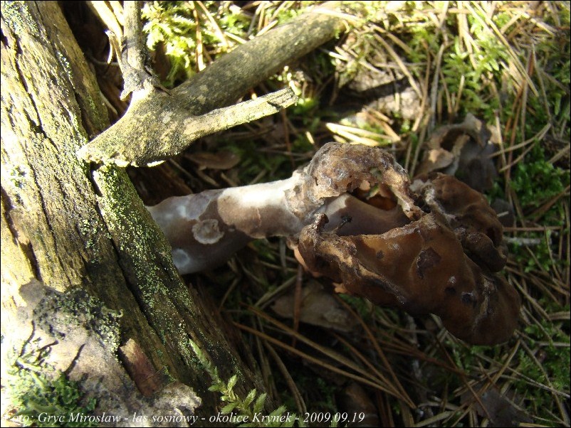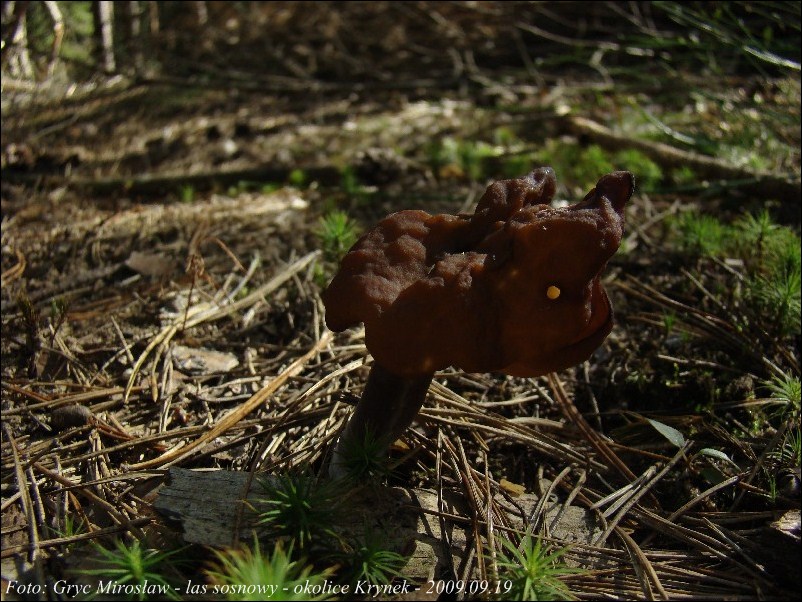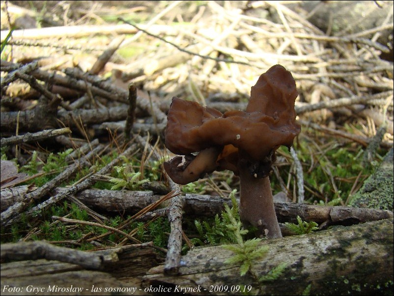 W opisywanym siedlisku wiekszość tych grzybów, wyrastała właśnie bezpośrednio na ziemi. Część jednak rosła (co widać na zdjęciach , niżej w galerii) na martwych, butwiejących gałęziach sosnowych. Można więć pokusić sie o stwierdzenie, że preferowane przez nią siedlisko oraz substrat, jest bardziej zbliżony do upodobań piestrzenicy kasztanowatej (Gyromitra esculenta) a nie piestrzenicy infułowatej (Gyromitra infula). Ze względu jednak na wiosenna porę występowania Gyromitra esculenta, pomylenie tych dwóch gatunków jest praktycznie niemożliwe. Okres jej występowania określiłbym jako bardzo długi. Pierwsze owocniki spotykałem już w sierpniu, natomiast jak widać ze zdjęć, ostatnie robione były 1 listopada, już po delikatnych pierwszych przymrozkach. Nadal zdrowe i jędrne bez jakichkolwiek oznak starości. Trudno jest cokolwiek więcej powiedziec o jej występowaniu na podstawie obserwacji jednego stanowiska. Tu jednak można pokusić się o stwierdzenie, że jest raczej w jakiś sposób powiazana z lasem sosnowym. Świadczy o tym charakter jej występowania właśnie w tym a nie innym miejscu. Las ten bowiem, który w zasadzie można określić jako jeszcze młode zalesienie sosnowe, z każdej strony jest otoczony monokulturą świerkową. Tu właśnie przebiega granica jej występowania. Pomimo moich usilnych starań, nie zdołałem znależć pod świerkami ani jednego owocnika. Późniejsze obserwacje dowiodły, że jest to gatunek bardzo "kapryśny". Podczas niesprzyjających warunków atmosferycznych potrafił robić nawet kilkuletnie przerwy w owocnikowaniu.