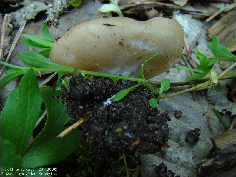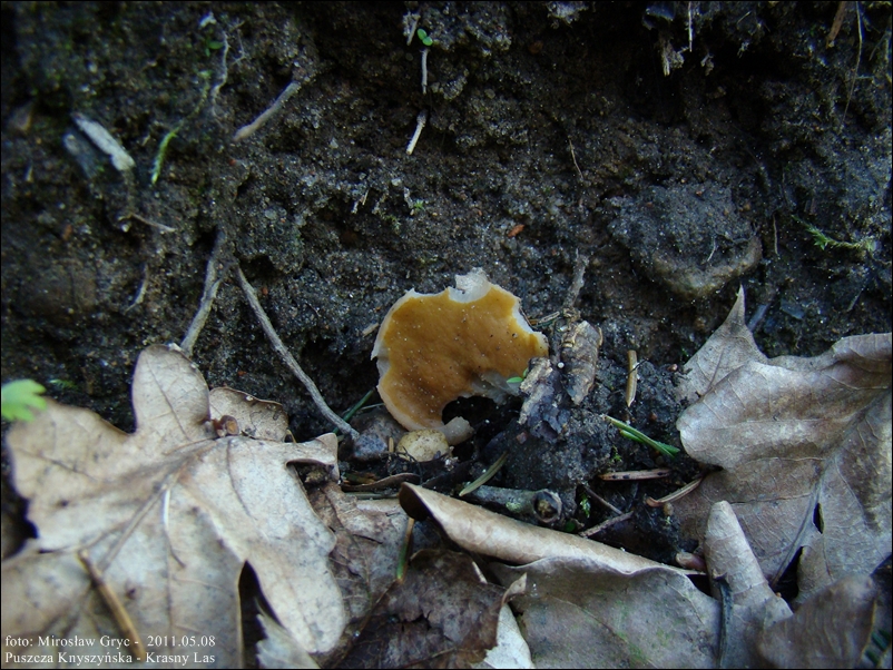 Rośnie na ziemi w różnego rodzaju lasach. Wybiera gleby zwięzłe i zasobne w wilgoć. Lubi miejsca gdzie okresami zbiera się woda z opadów atmosferycznych i nanosi różnego rodzaju szczątki materii organicznej. Można ją równiez spotkać w bliskim sąsiedztwie murszejących pni, ale nie jest uzależniona od ich występowania. Okres jej wzrostu przypada na wczesną wiosnę ale ze względu na powolną wegetację, przeciąga się prawie aż do końca maja. Do czasu mego znaleziska gatunek ten nie był notowany z terenu Polski. Jego rozpoznanie strasznie się przeciągało ponieważ kilkakrotnie zebrane owocniki nie były na tyle dojrzałe aby miały wyraźne cechy mikroskopowe. W końcu udało się znaleźć dojrzałe, porządnie już podgryzione przez ślimaki ... ale o tym, możecie poczytać w wątku na Bio-Forum.