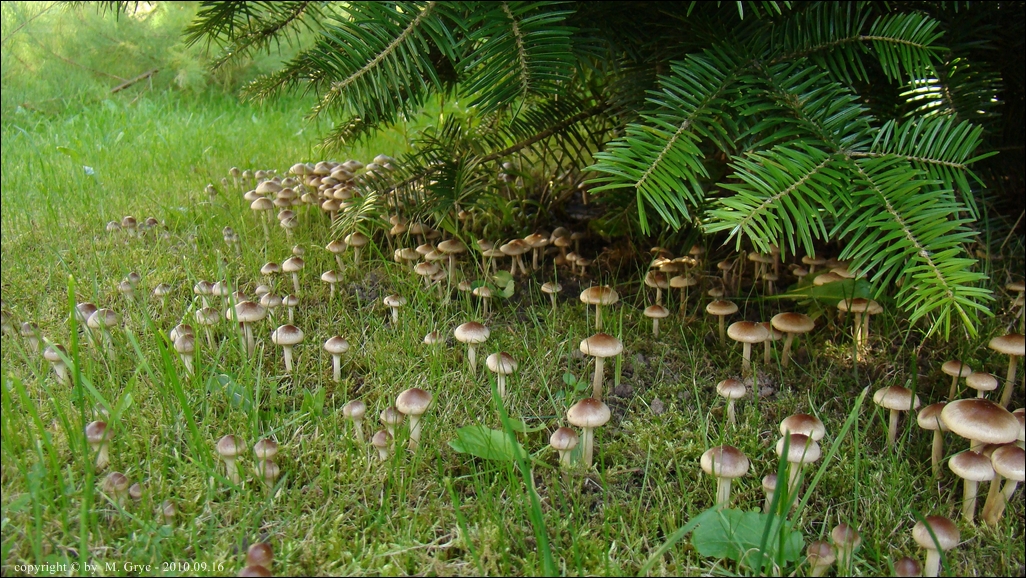 Substrat: Trawnik na moim podwórzu, corocznie masowo pojawiają się wokół jodły koreańskiej.