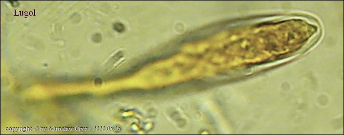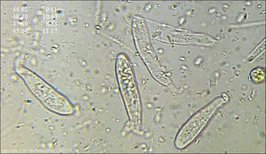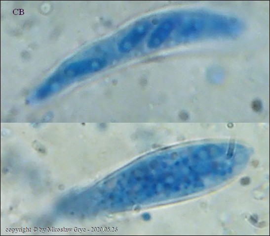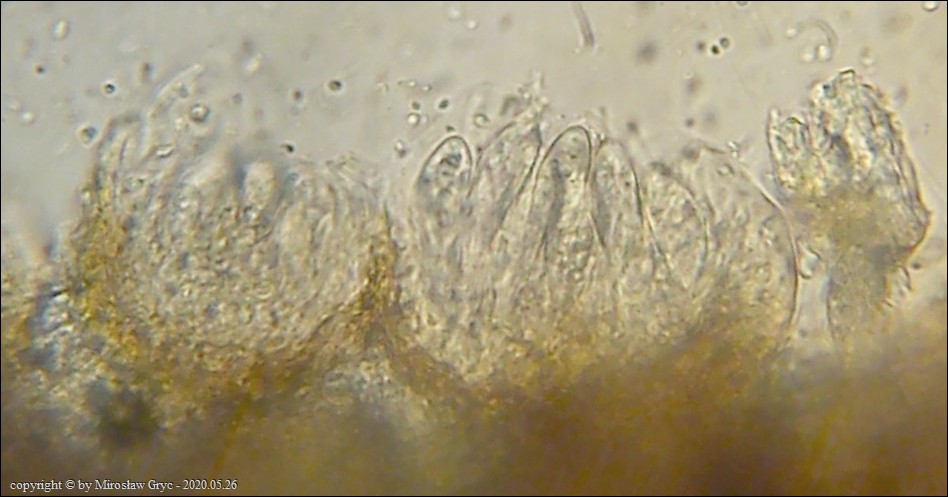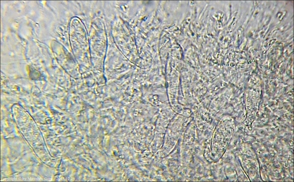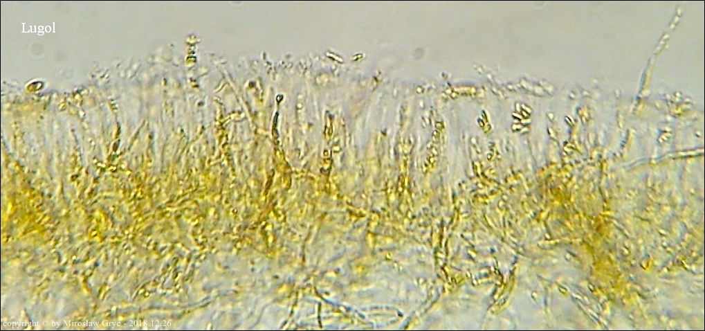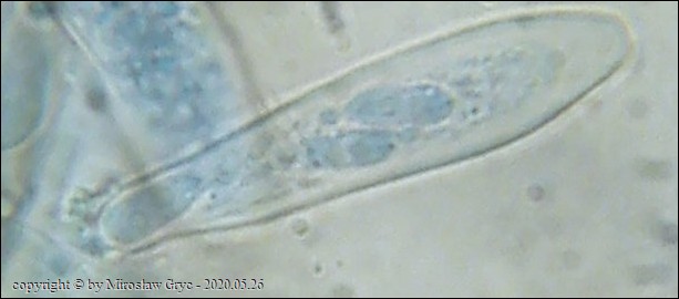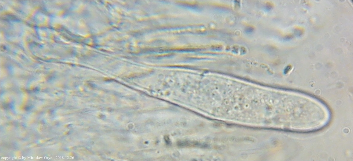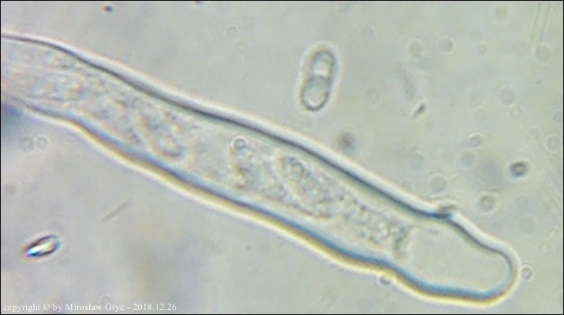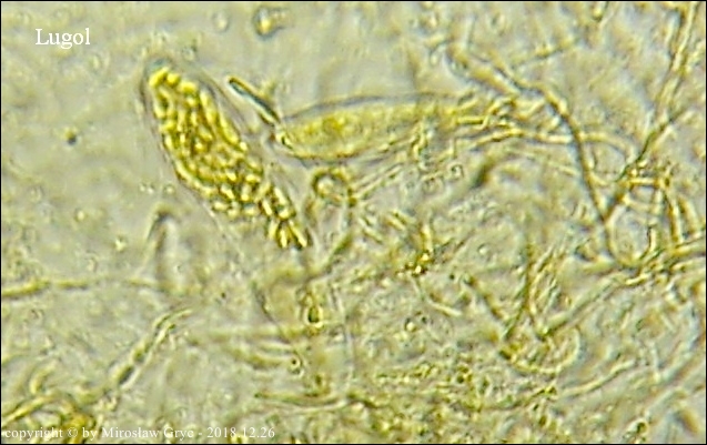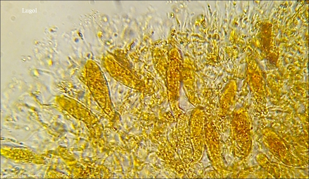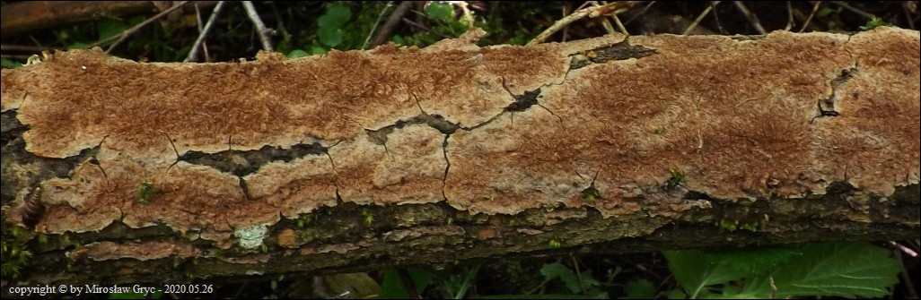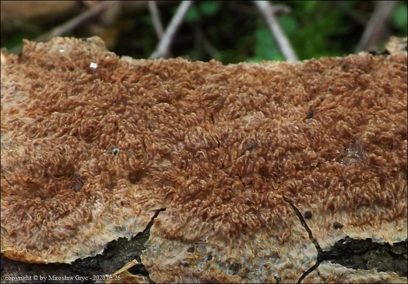 Substrat: Owocniki pasożytujące wewnątrz hymenium starego okazu przedstawiciela