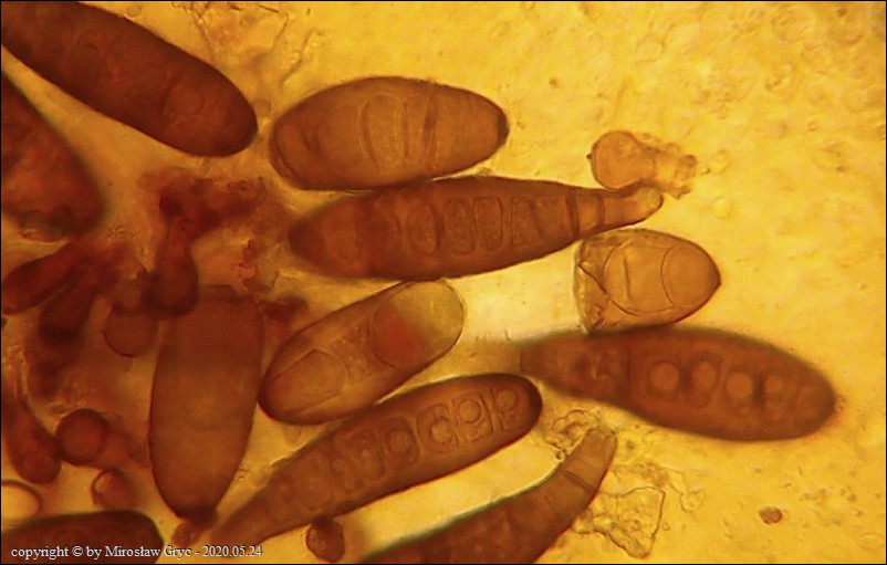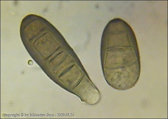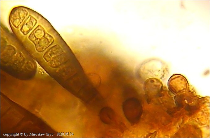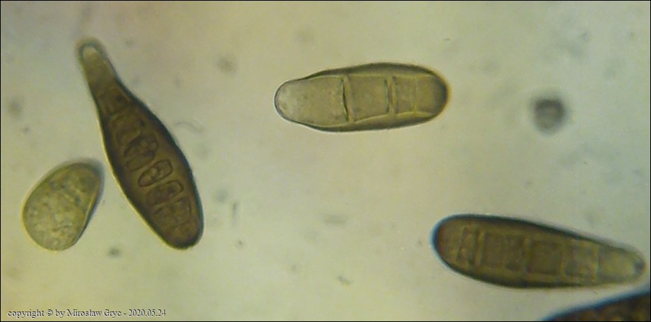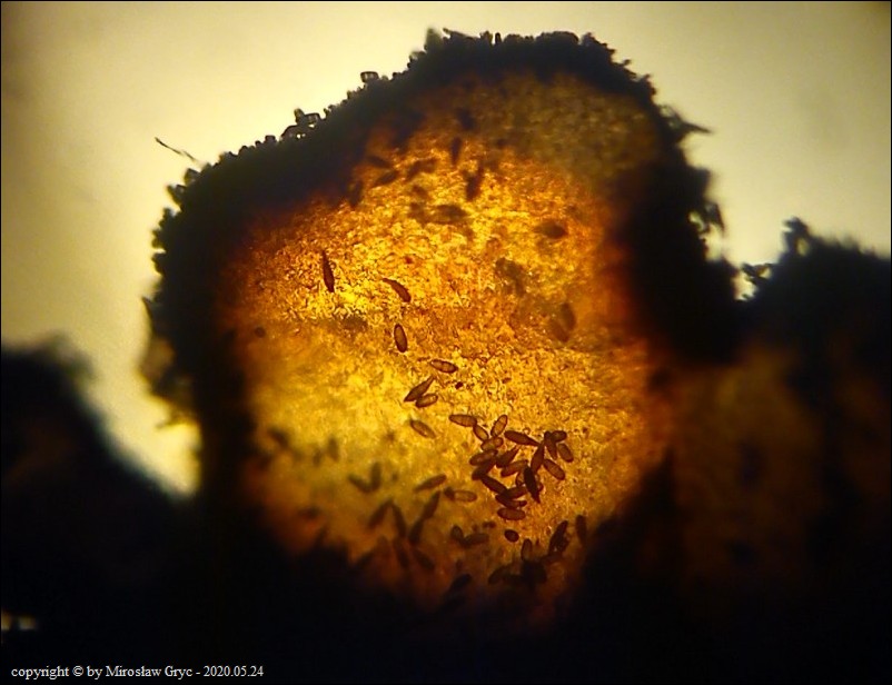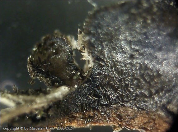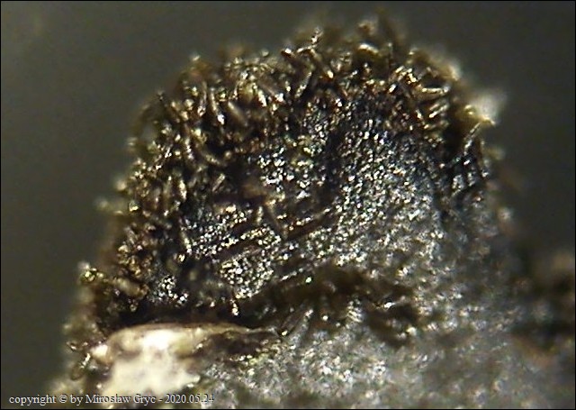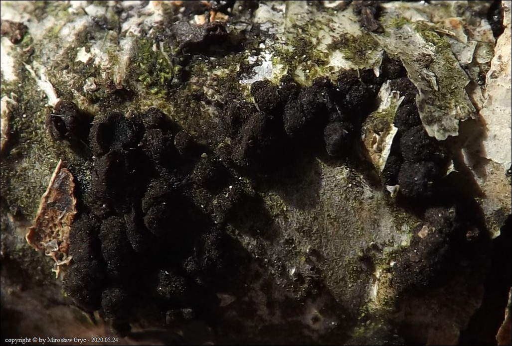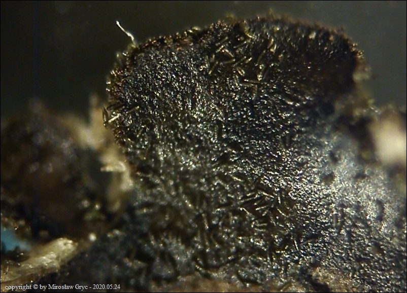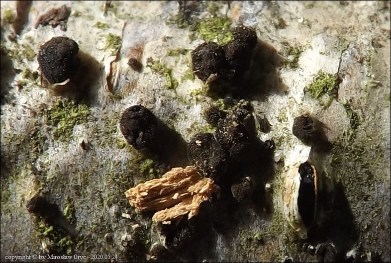 Substrat: Owocniki na martwej, cienkiej gałęzi brzozy (Betula sp.), leżącej na ściółce.