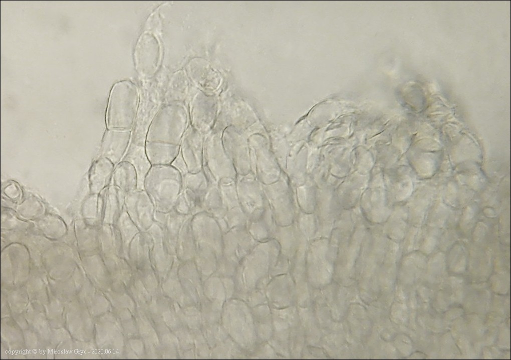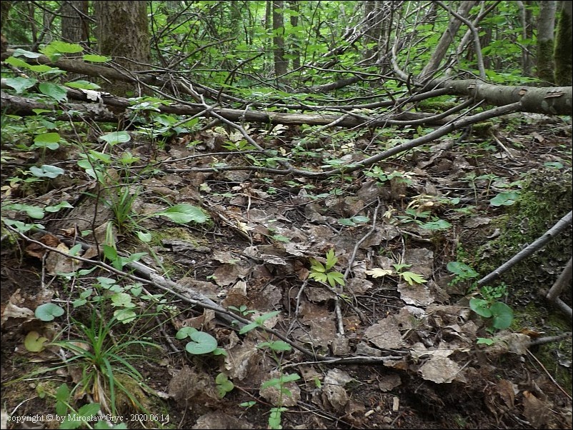 Siedlisko: Kilka owocników na skraju niezbyt głebokiego wąwozu w zadrzewieniu liściastym.